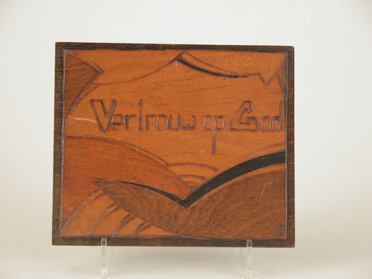Tekstbord met "Vertrouw op God"