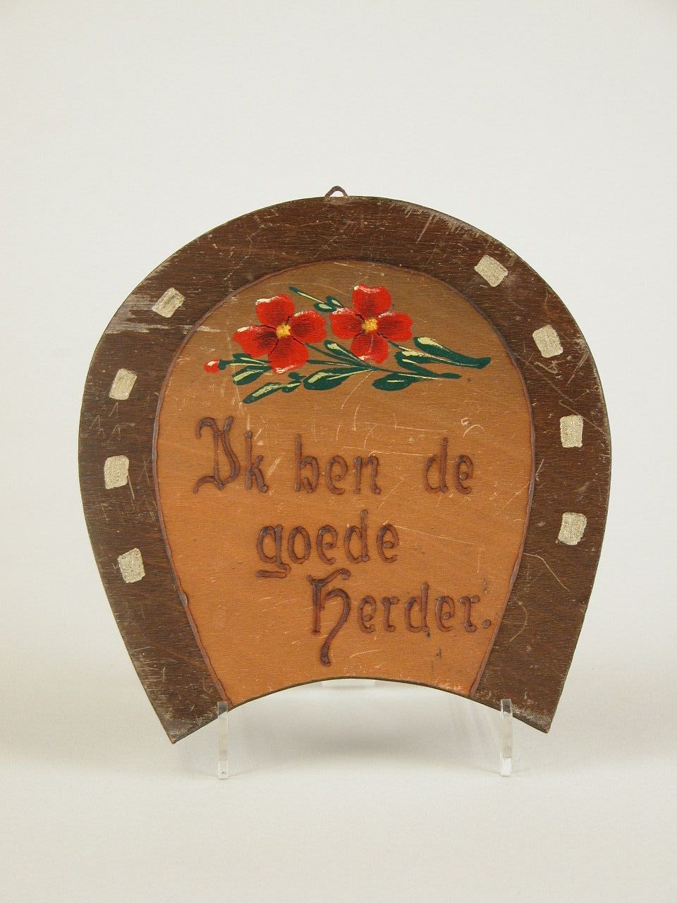 Tekstbord in de vorm van een hoefijzer met "Ik ben de Goede Herder."