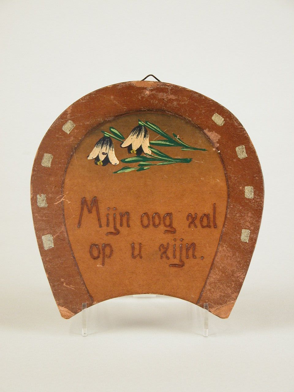 Tekstbord in de vorm van een hoefijzer met "Mijn oog zal op u zijn."