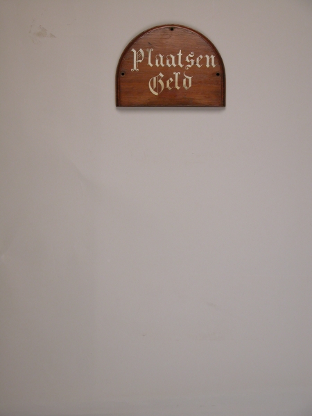 Tekstbord "Plaatsengeld" bij offerblok (SPKK v352a)