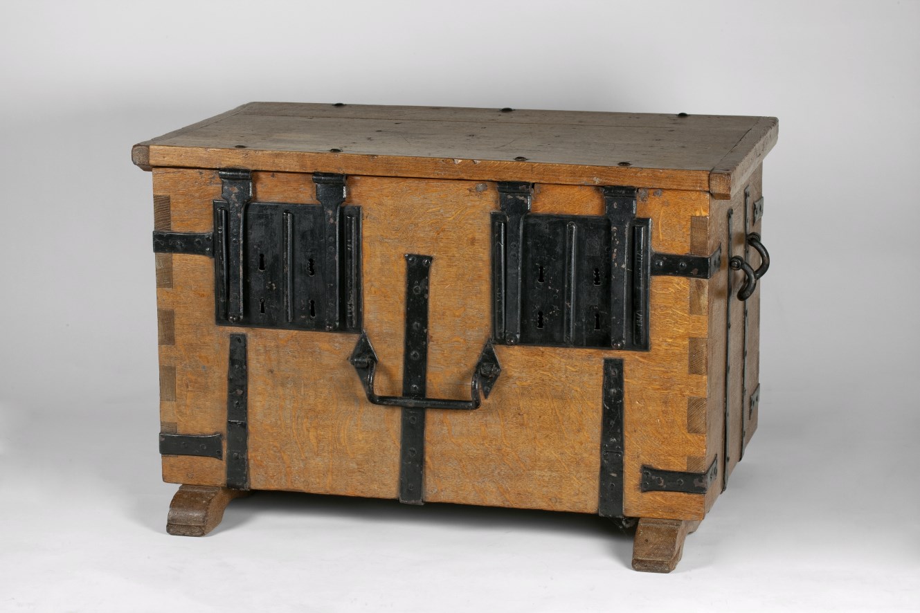 Kist met ijzerbeslag voor het archief van de synode van Dordrecht
