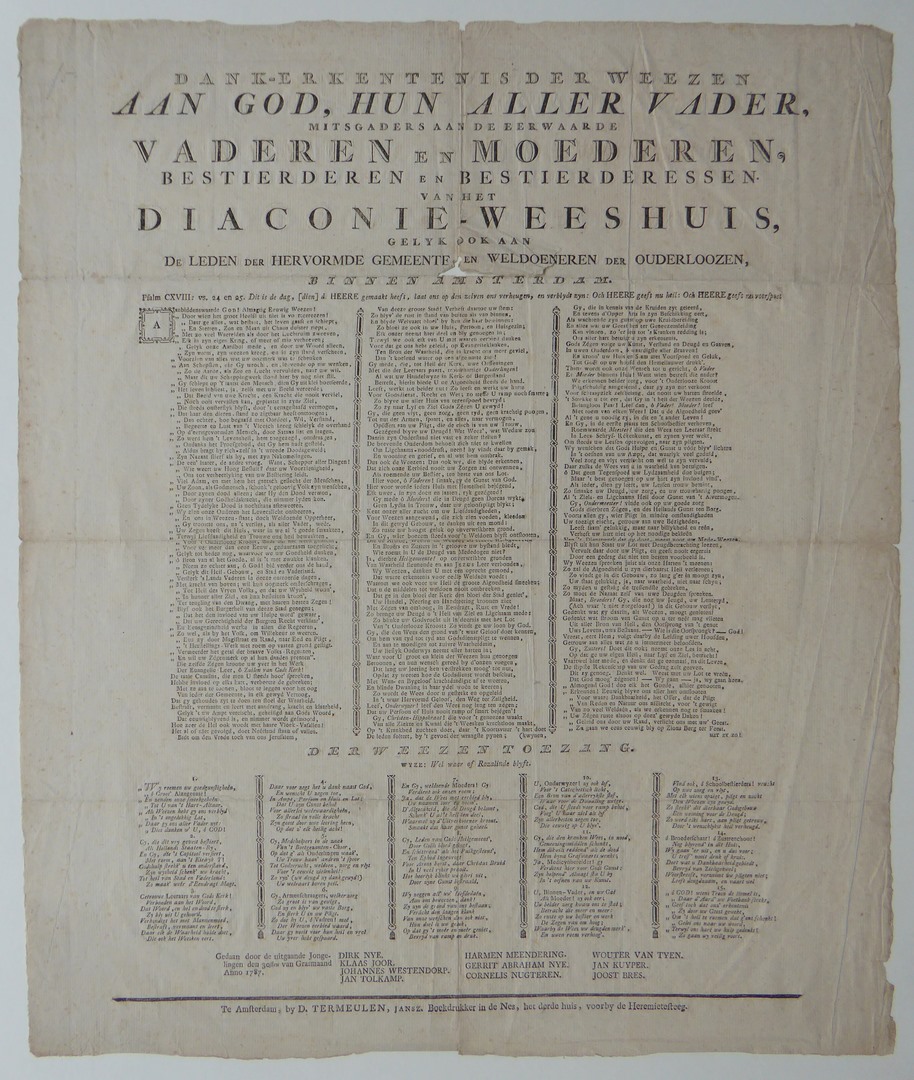 "Dank-erkentenis der Weezen aan God... Diaconie-Weeshuis... binnen Amsterdam"