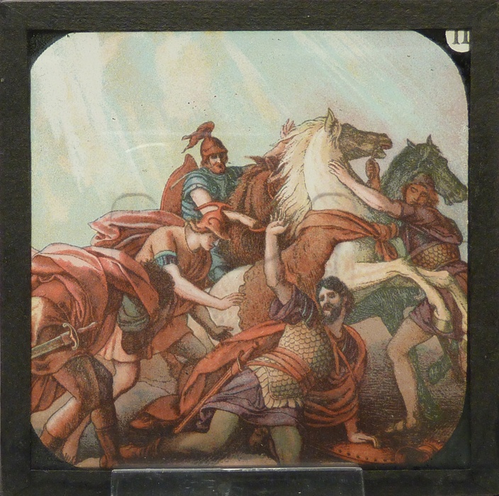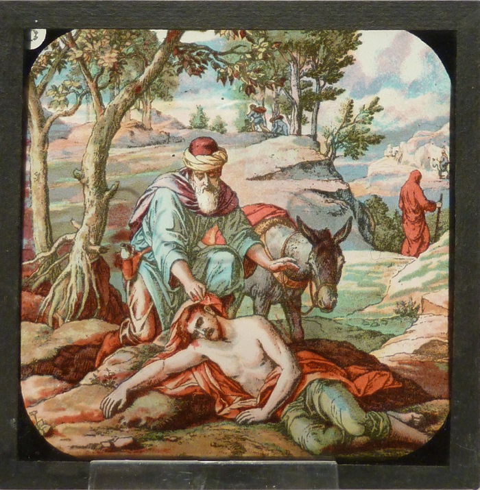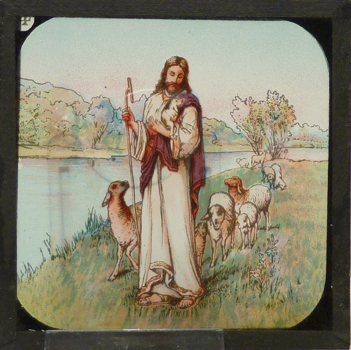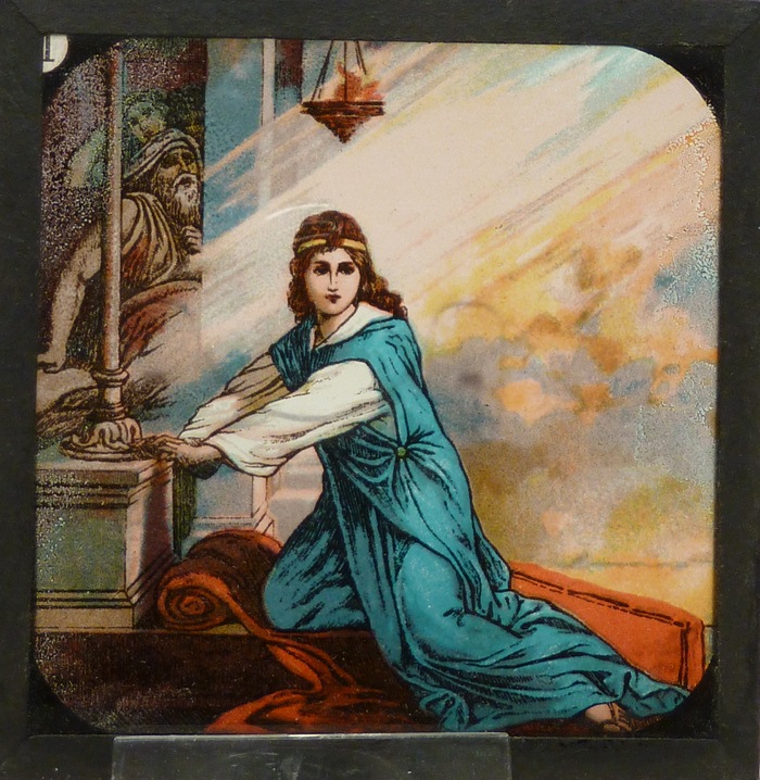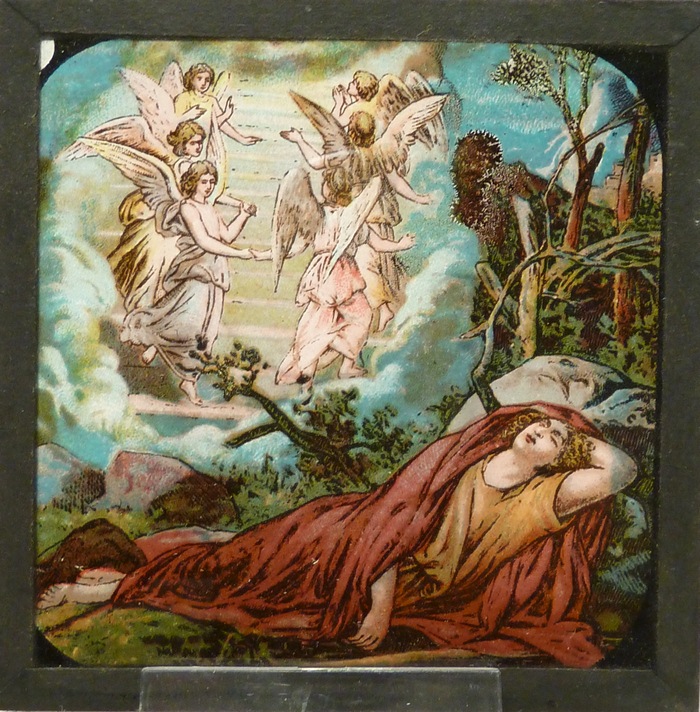 Lantaarnplaatjes, 12 stuks in kleur, met bijbelse voorstellingen