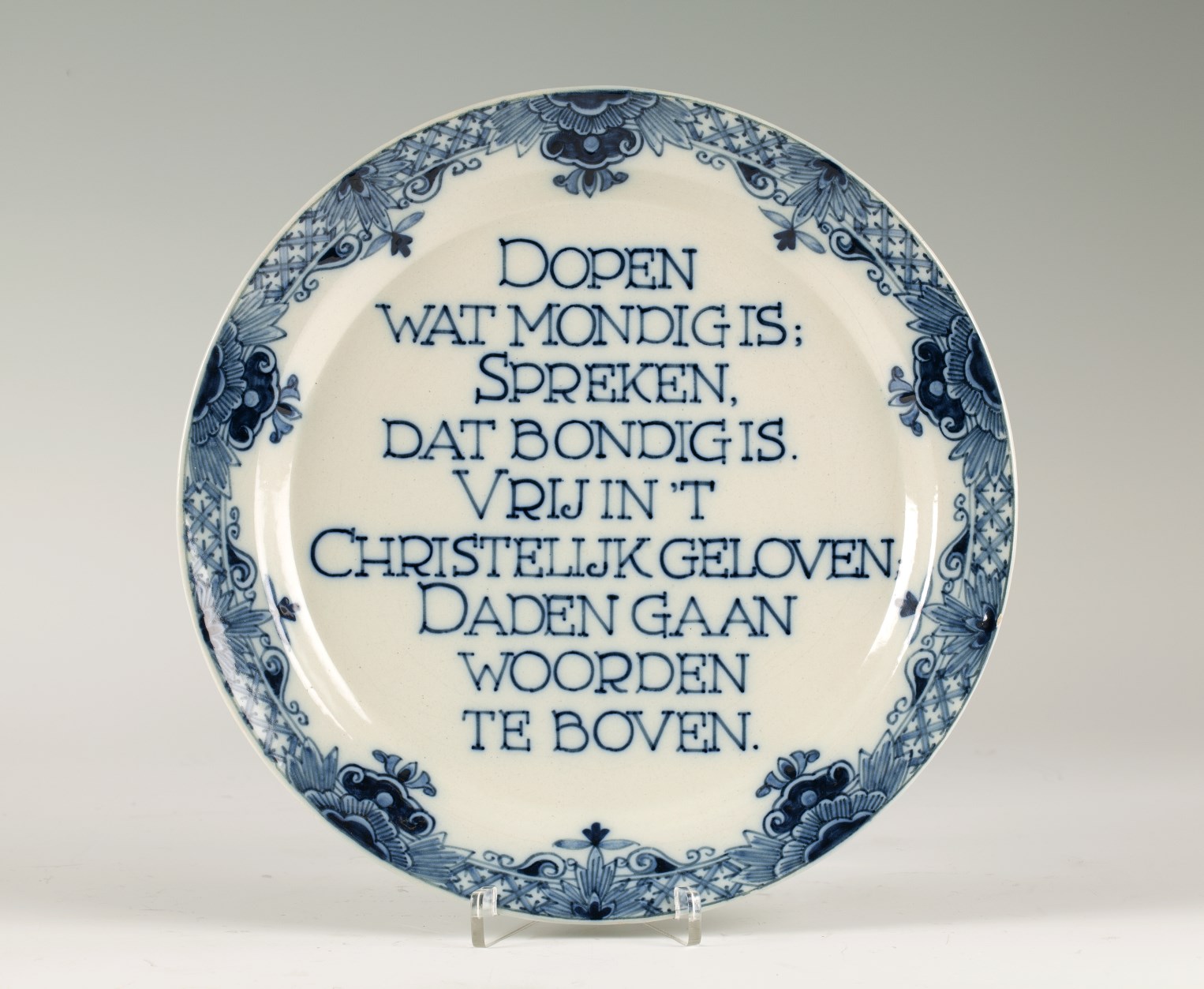 Wandbord met doopsgezinde spreuk.