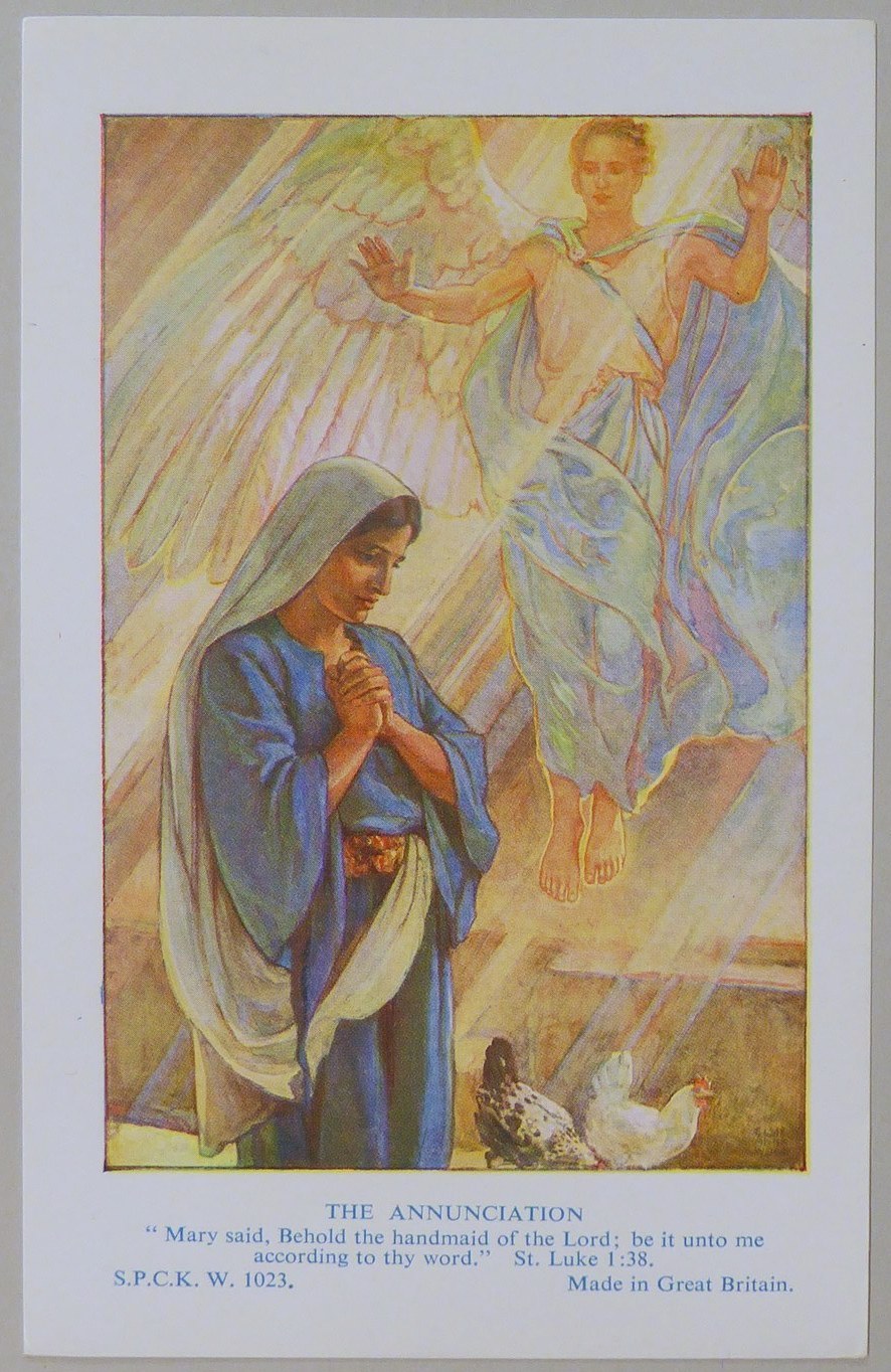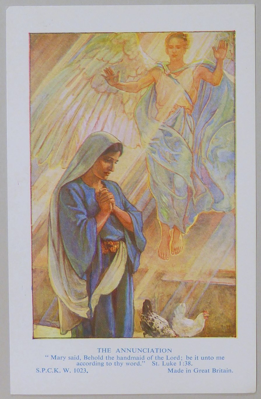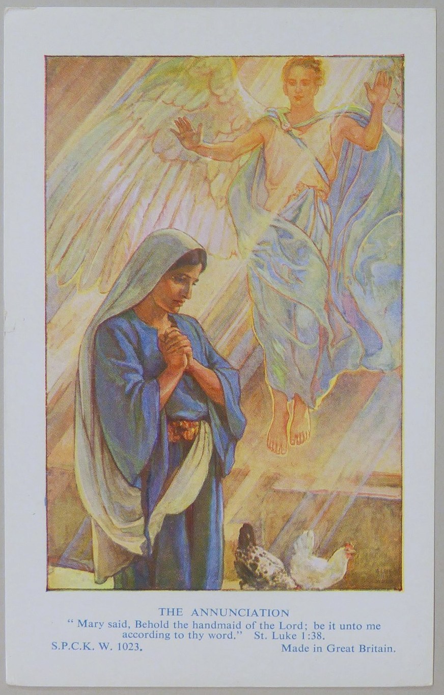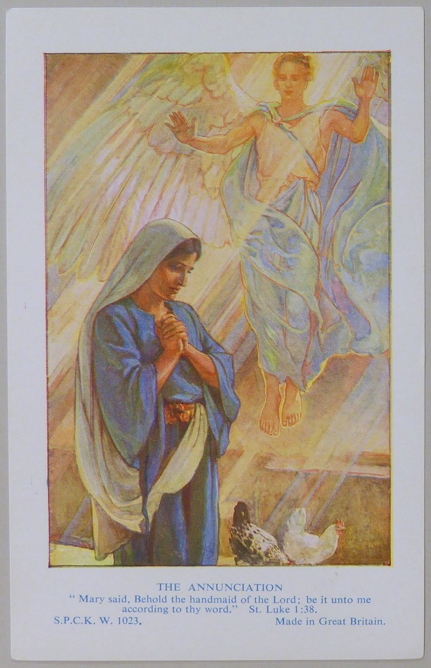 Beloningsplaatje (15 stuks) met Maria en de engel, met "Annunciatie"