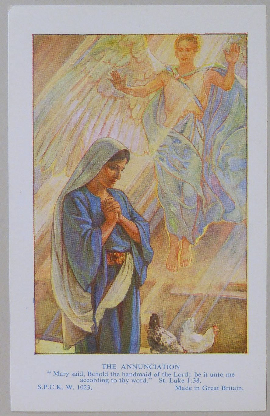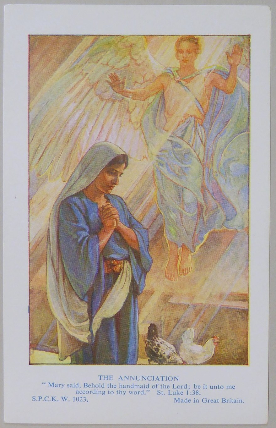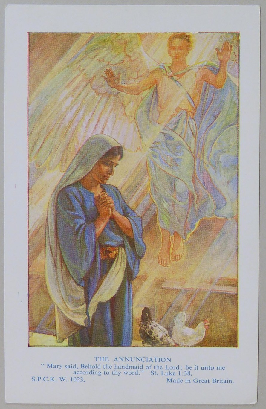 Beloningsplaatje (15 stuks) met Maria en de engel, met "Annunciatie"
