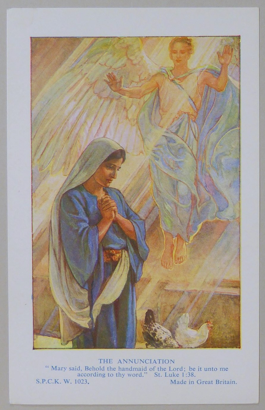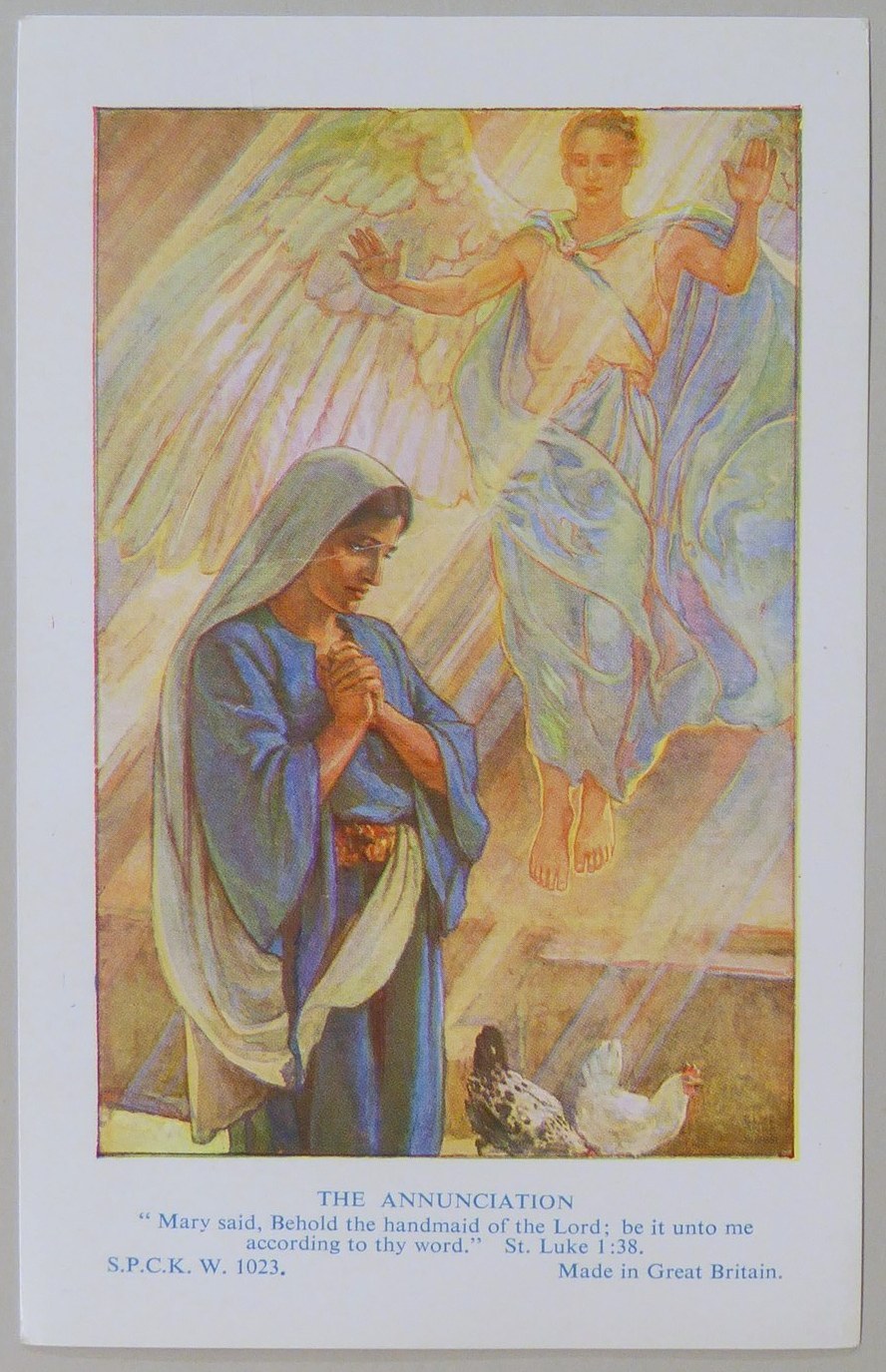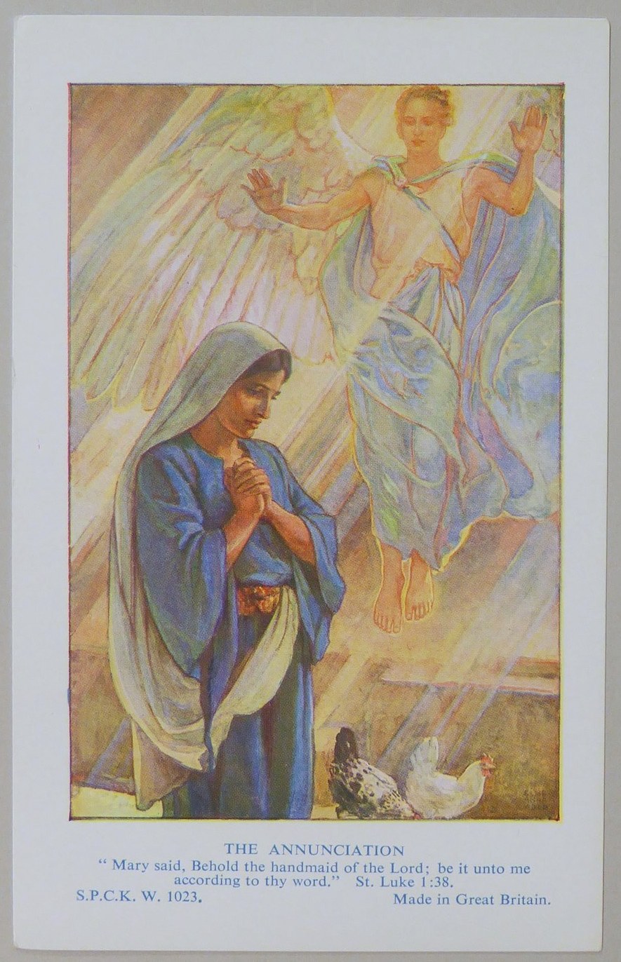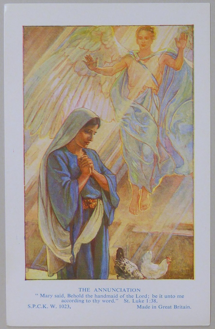 Beloningsplaatje (15 stuks) met Maria en de engel, met "Annunciatie"