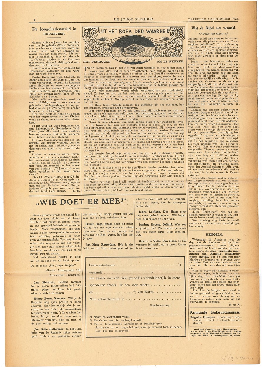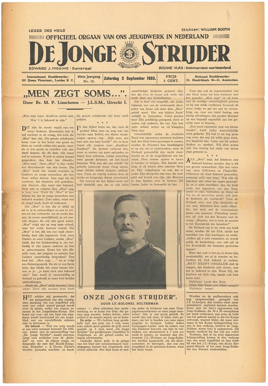 De jonge strijder, officieel orgaan van ons jeugdwerk in Nederland, zaterdag 2 september 1933