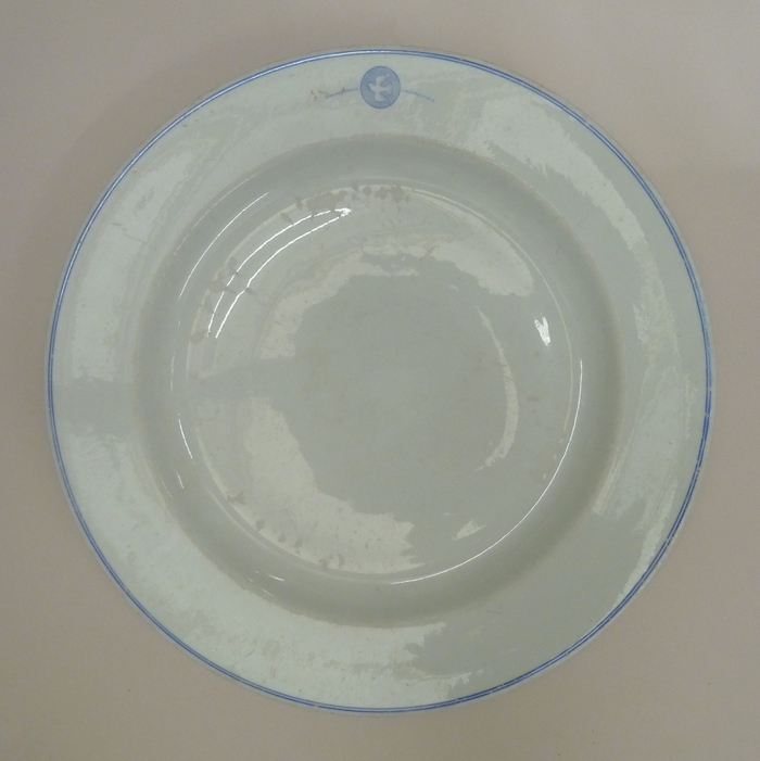 Groot bord met vredesduifembleem, en met "Diakonessenhuis Utrecht"