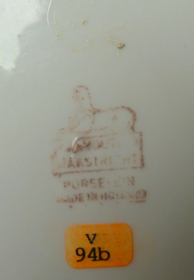 Soepbord met vredesduifembleem en met "Diakonessenhuis Utrecht" in blauw