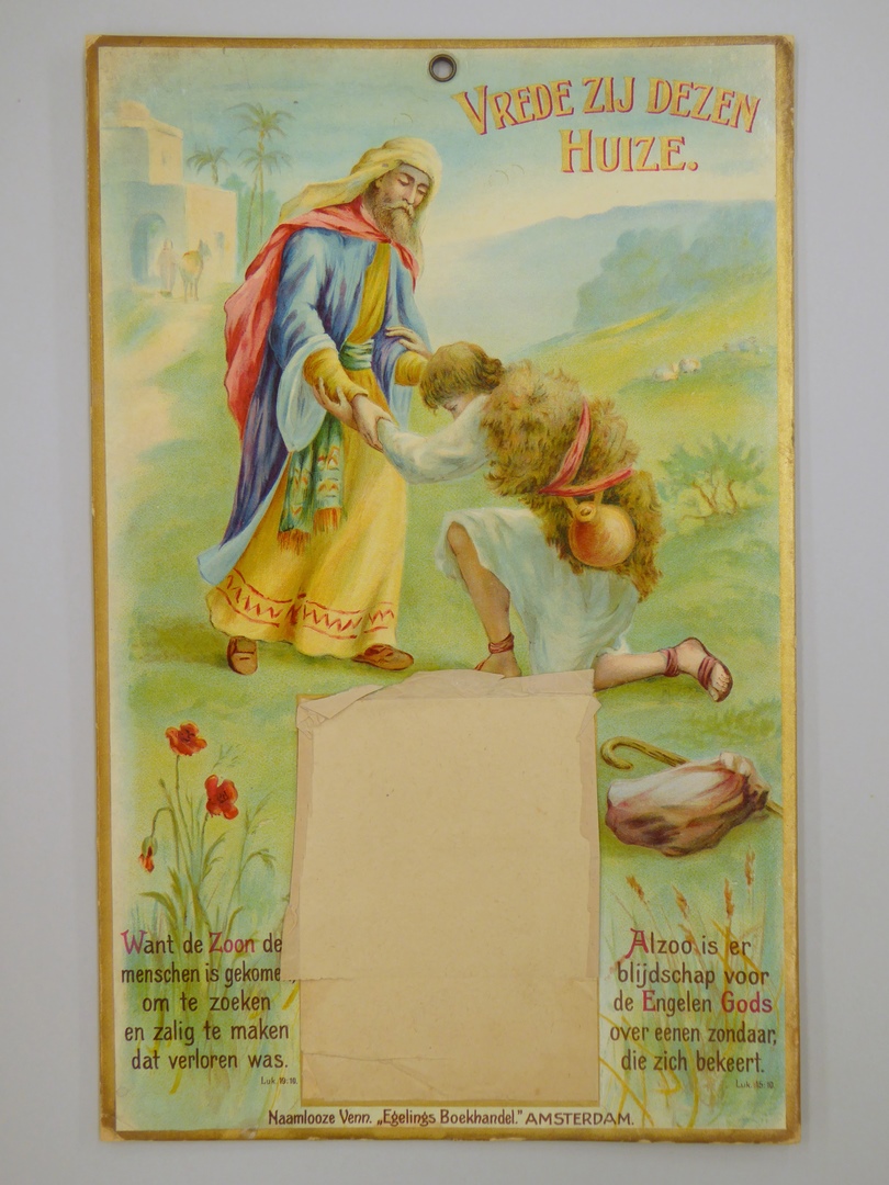 Ondergrond van scheurkalender met verloren schaap, met "Want de Zoon ..."