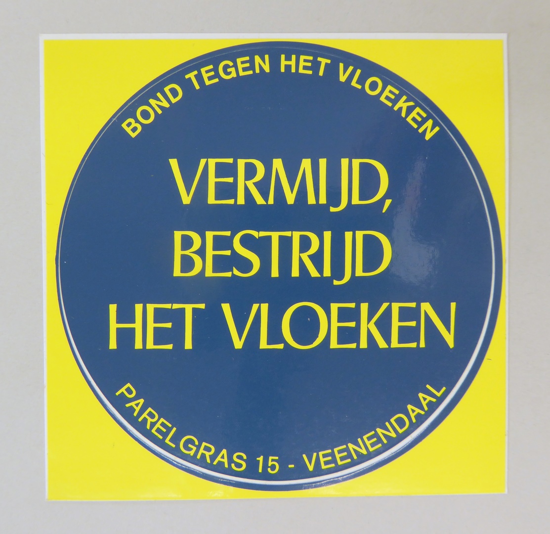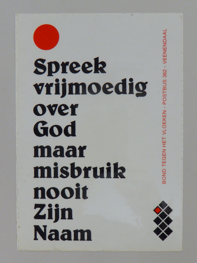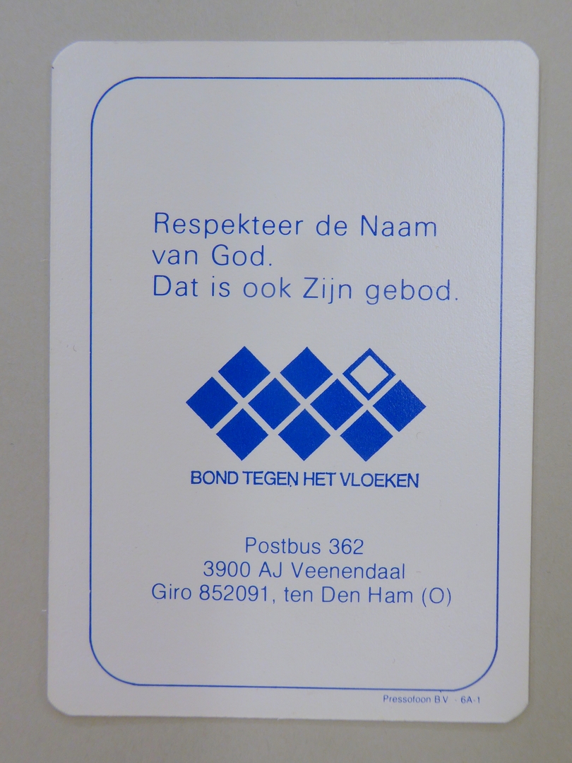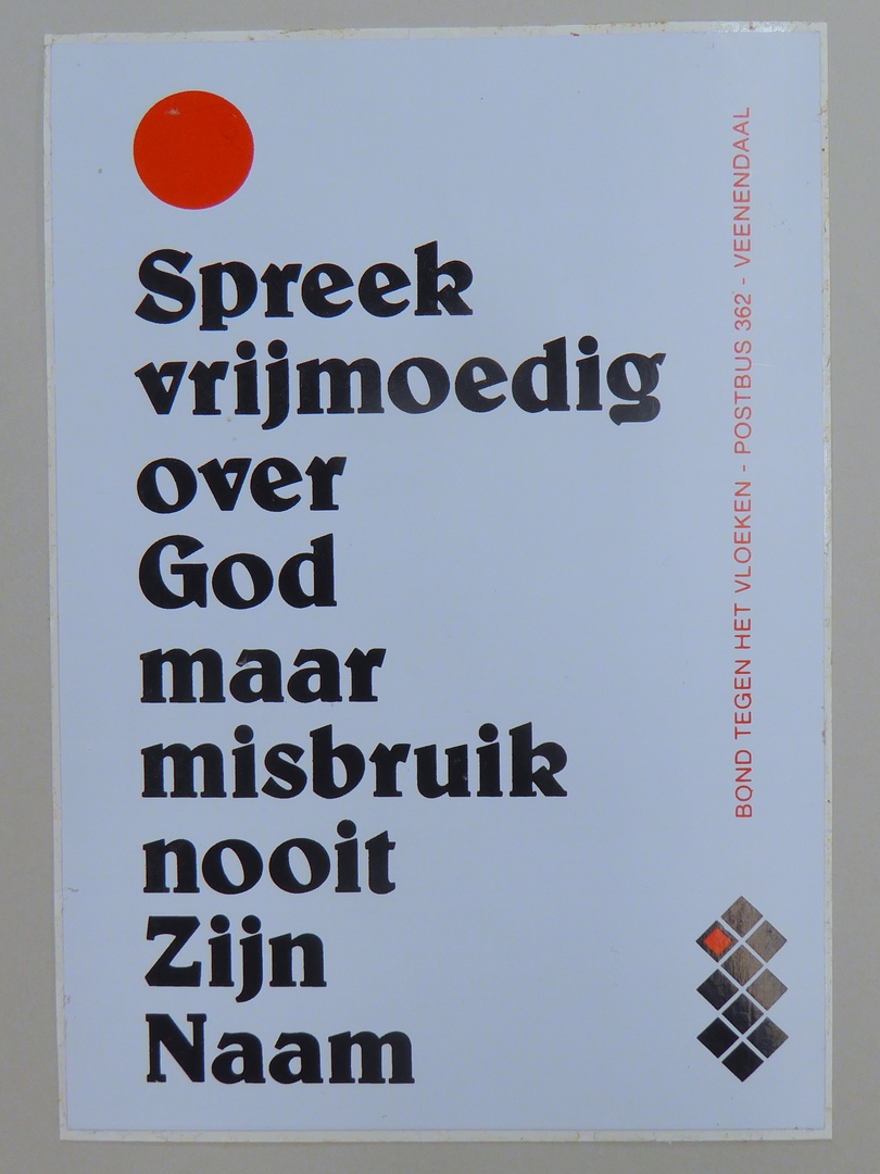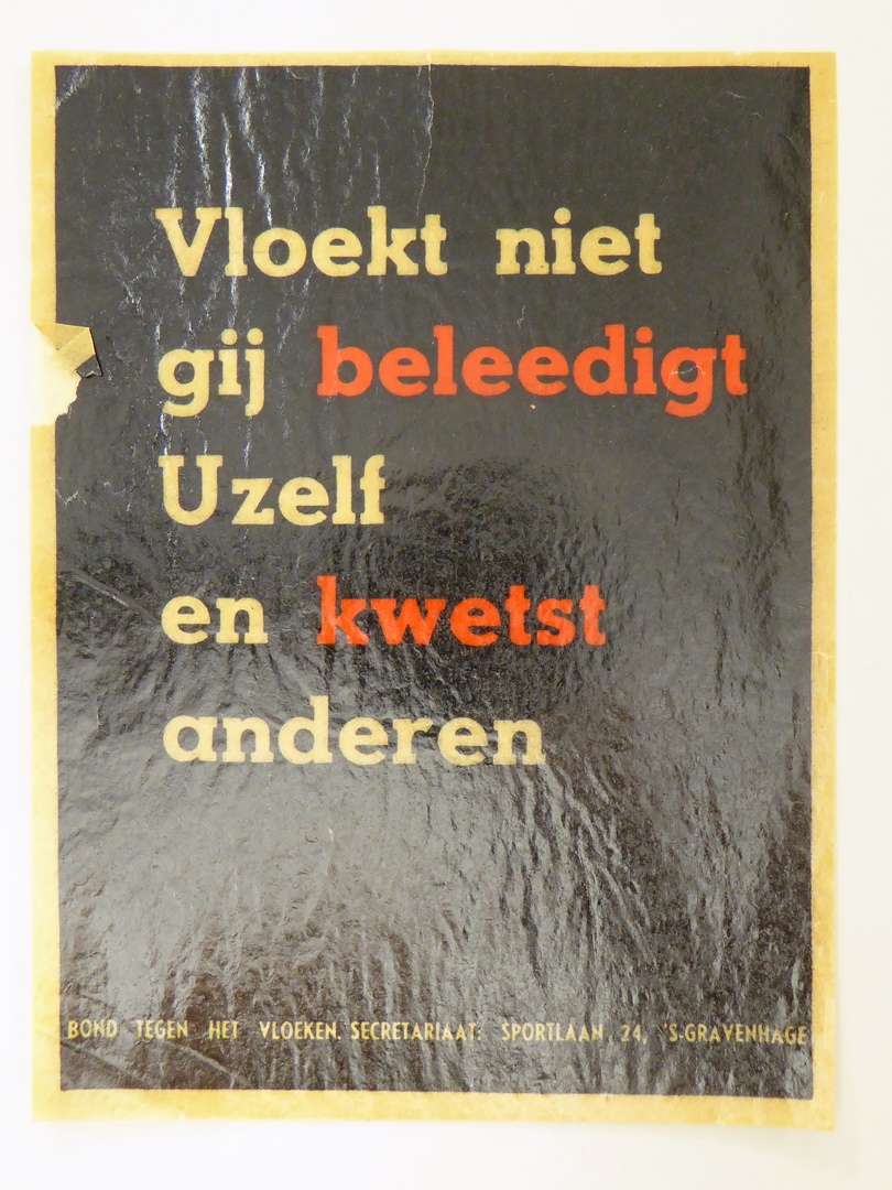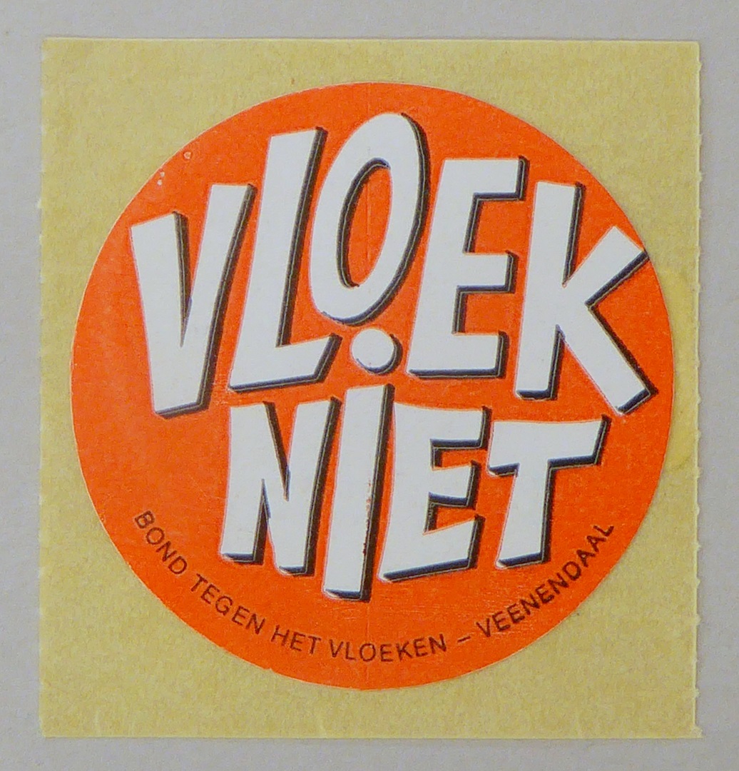 Stickers en kaartjes (genummerd SPKK v97v4 t/m v47) van de Bond tegen het Vloeken