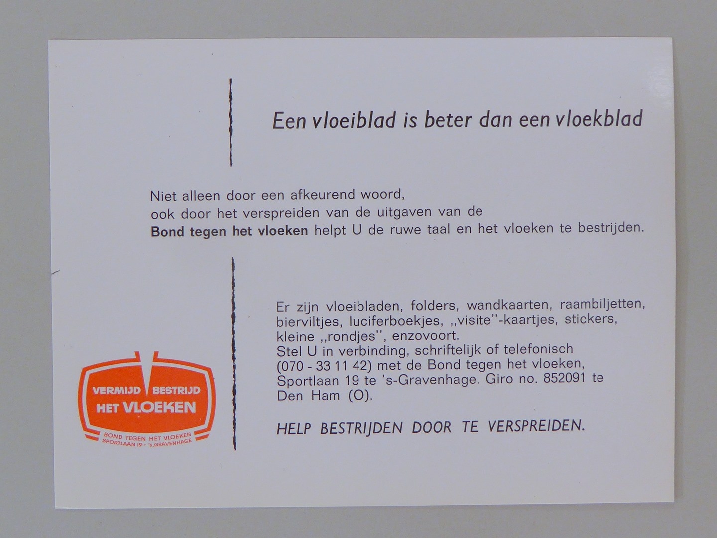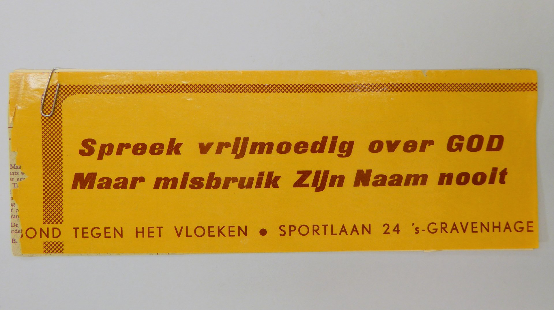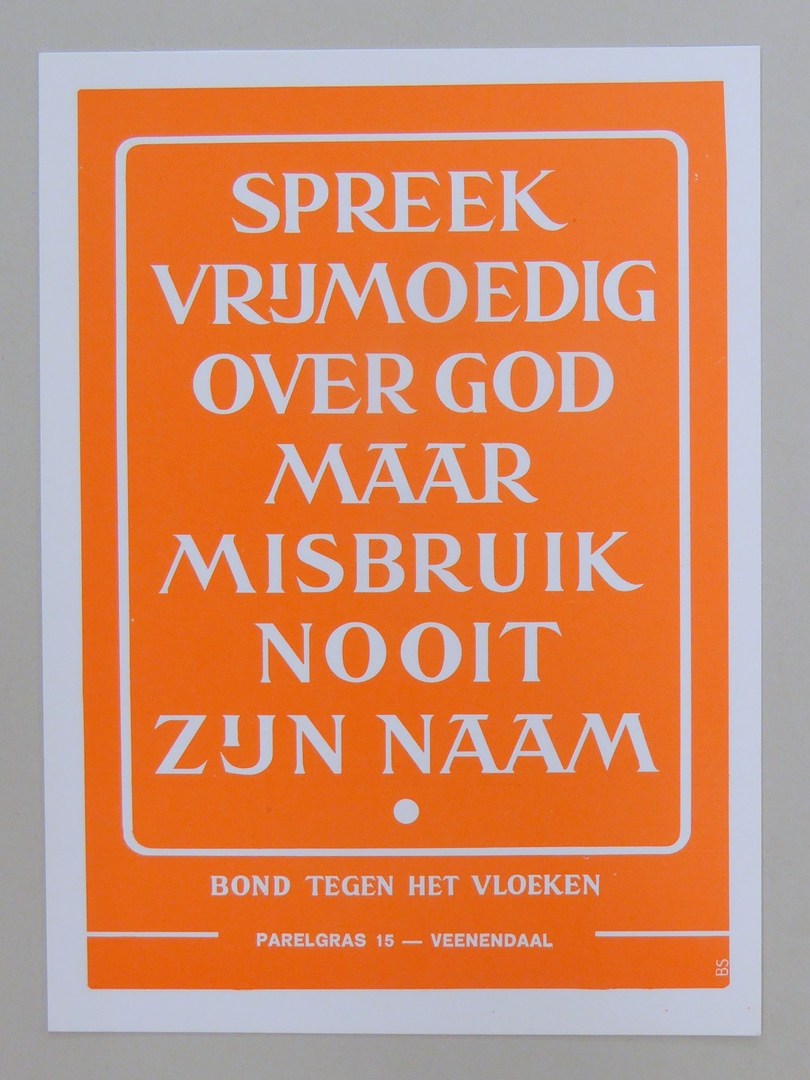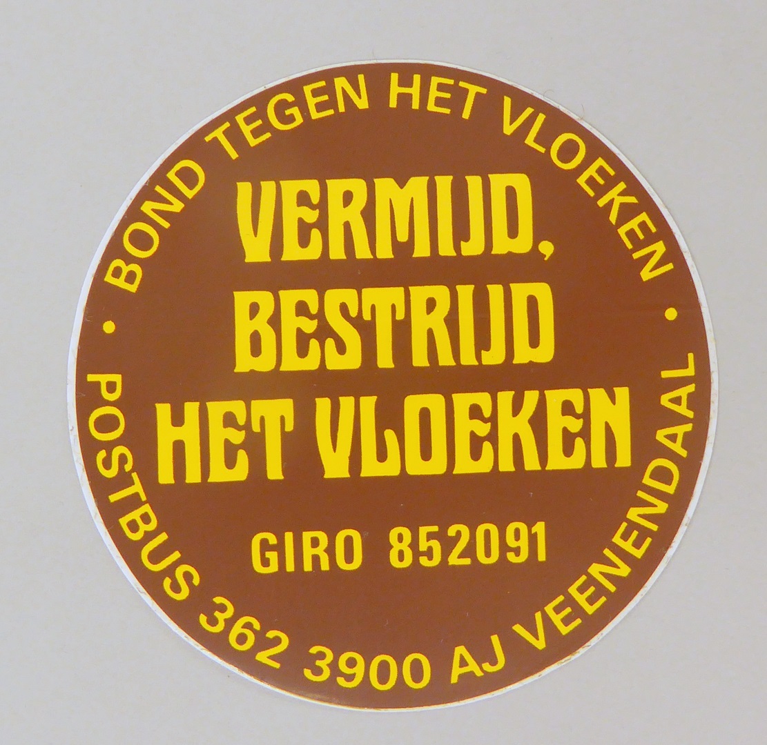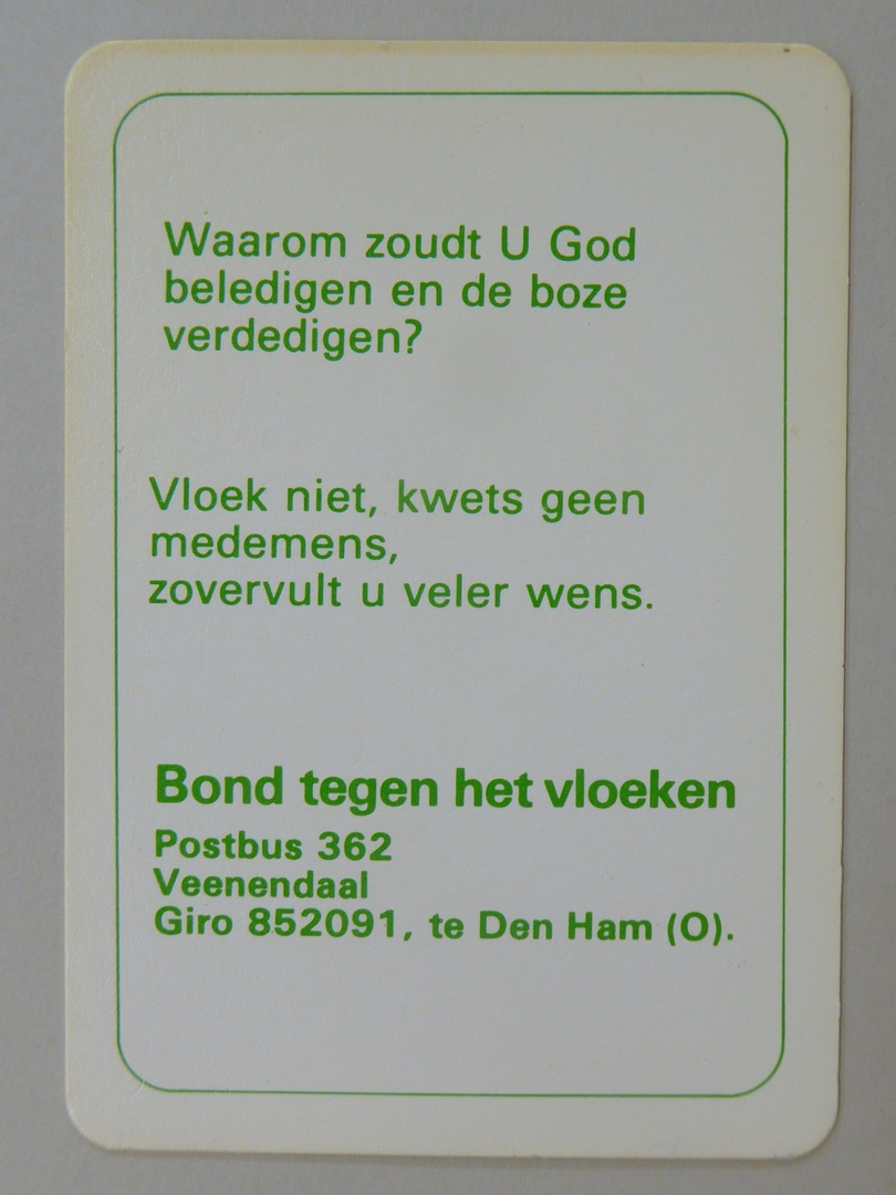 Stickers en kaartjes (genummerd SPKK v97v4 t/m v47) van de Bond tegen het Vloeken