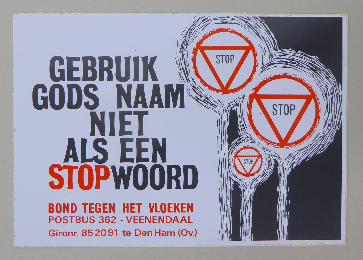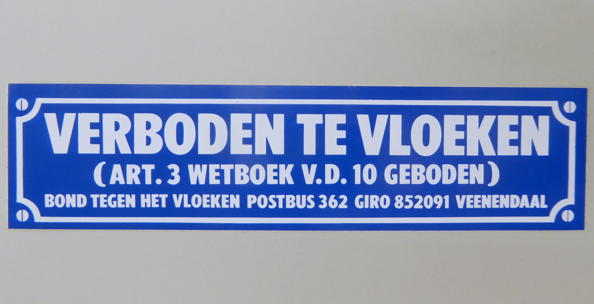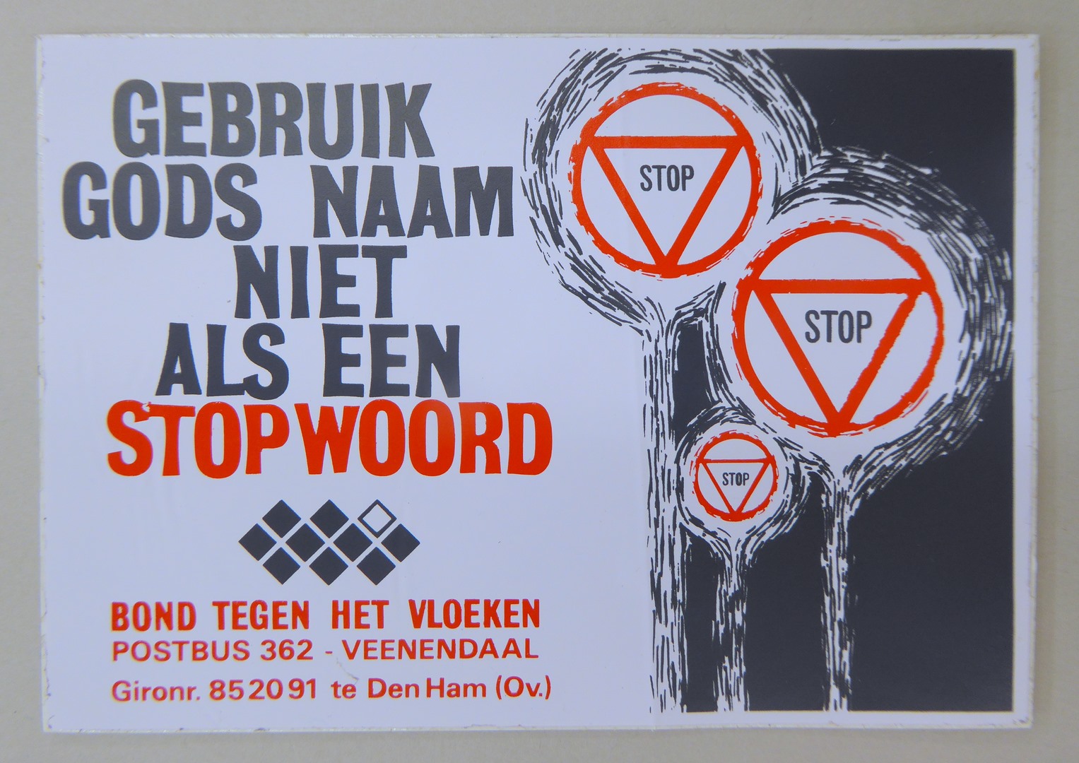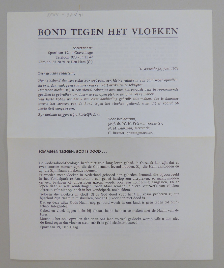 Stickers en kaartjes (genummerd SPKK v97v4 t/m v47) van de Bond tegen het Vloeken