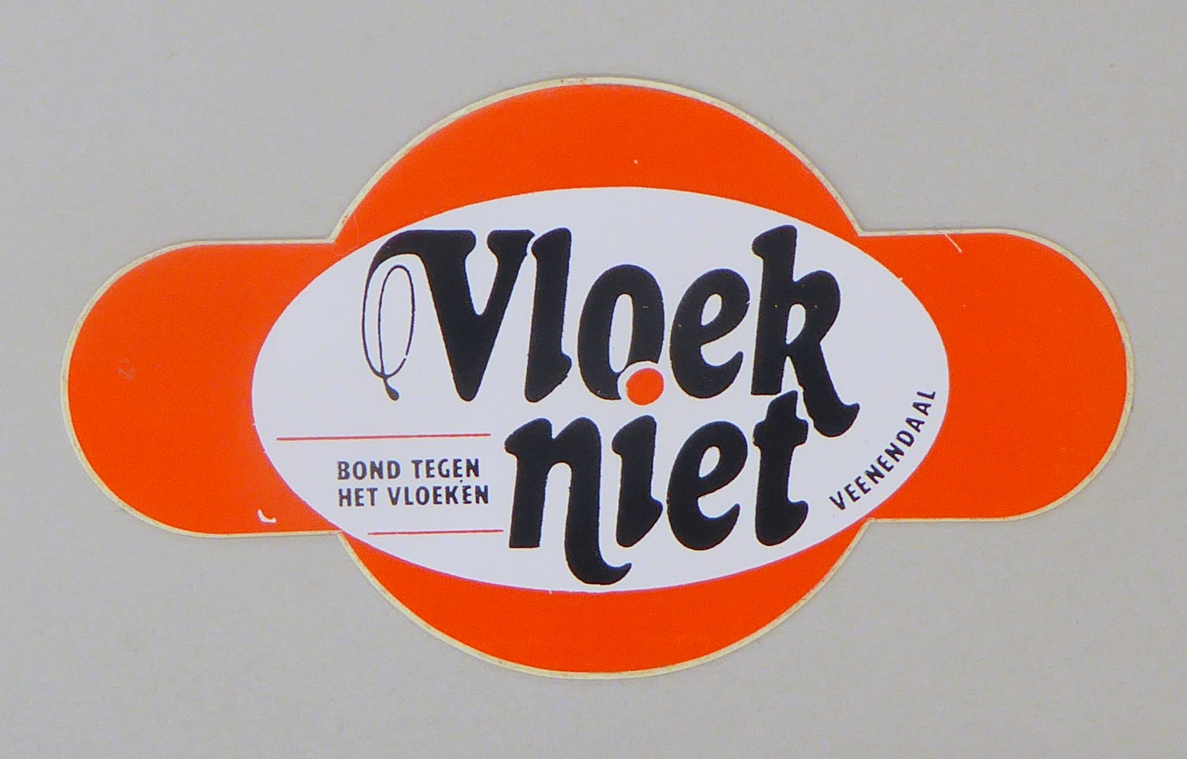 Wit-rode sticker met "Vloek niet"
