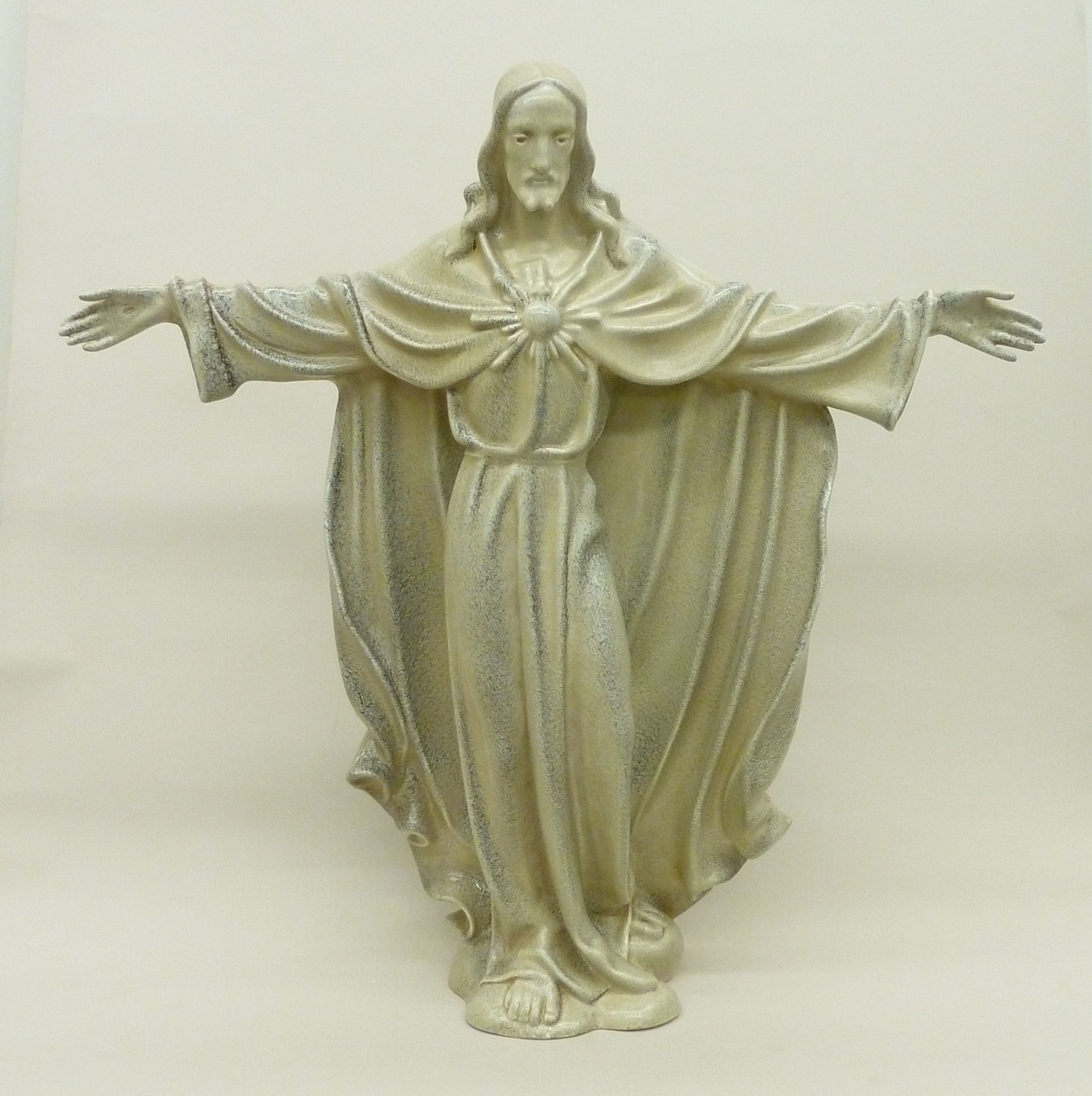 H. Hartbeeld in groenig-geel met bruine spikkels, geglazuurd aardewerk