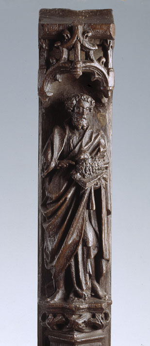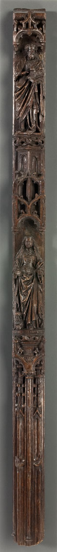 Deurnaald met Johannes de Doper en Catharina van Alexandrië, elk op een console onder een baldakijn