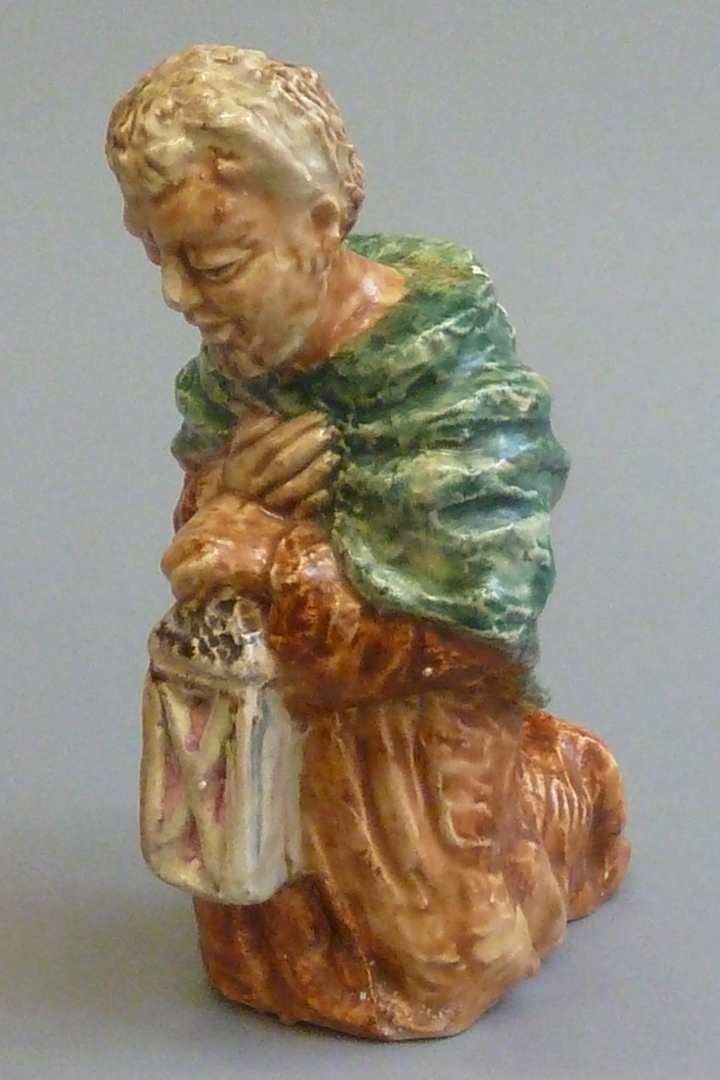 Jozef met lantaarn in linkerhand, geknield