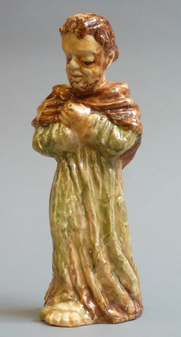 Staande herder met handen op de borst. Aan onderzijde gemerkt '118 AVOS'.