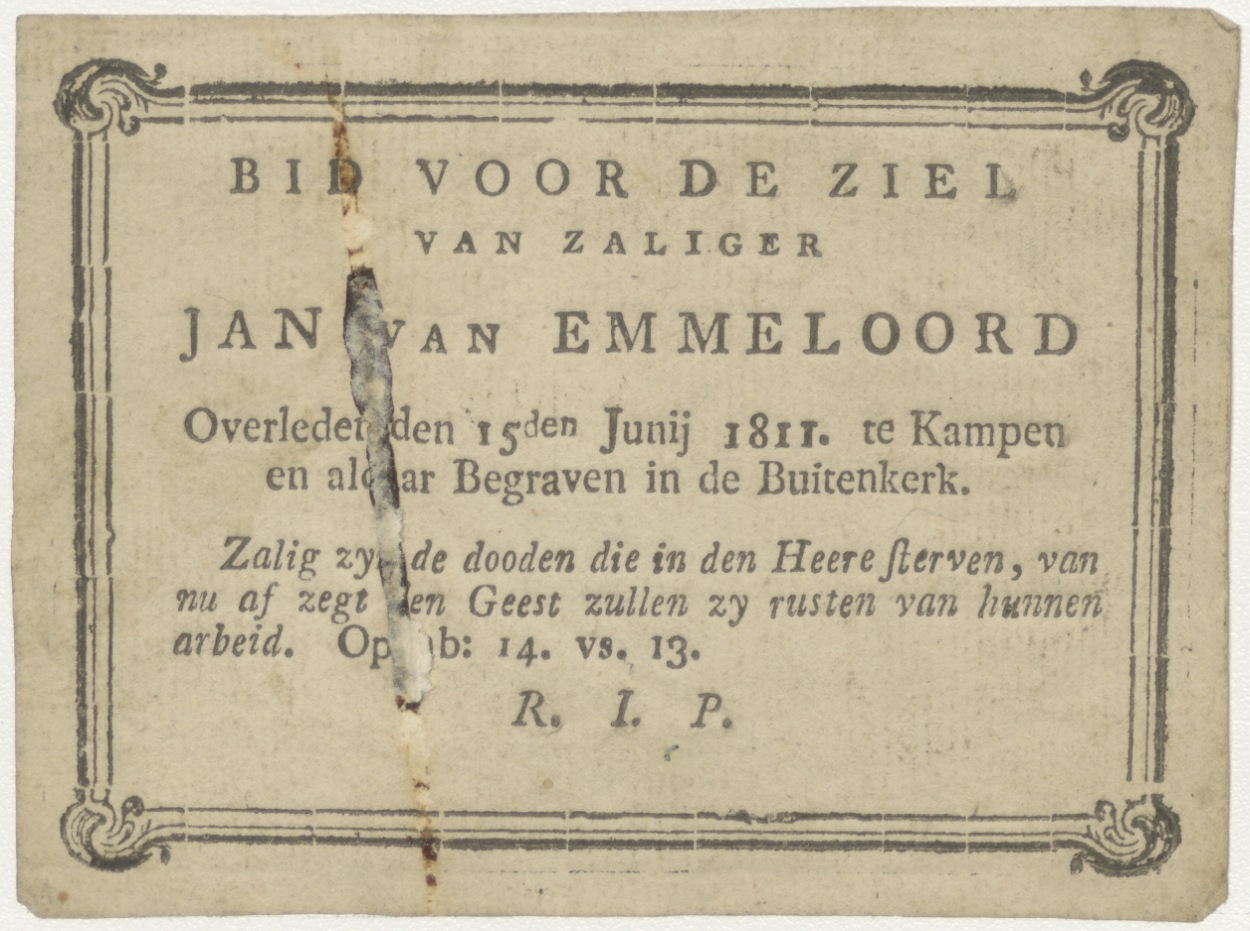 Bid voor ziel Jan van Emmeloord (+1811) Kampen