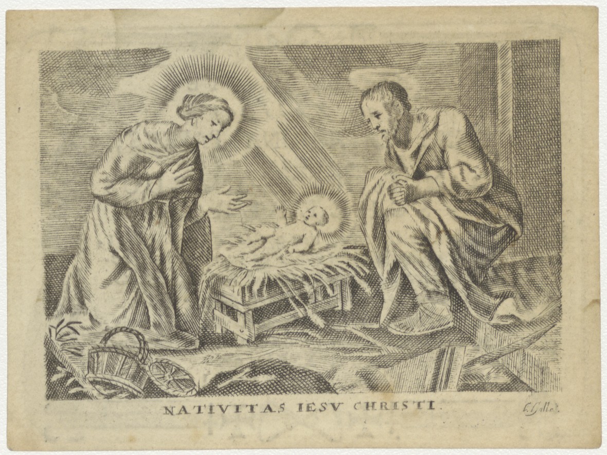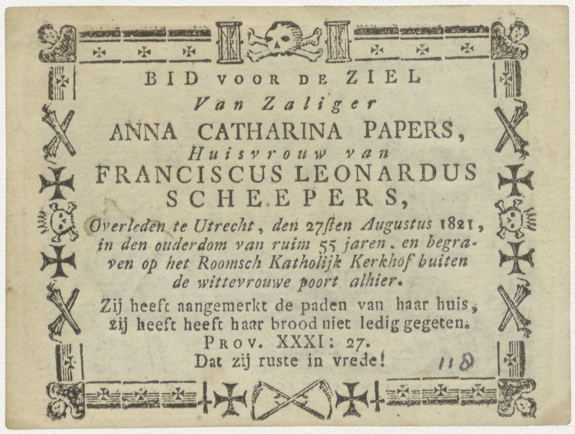 Geboorte van Christus, H. Familie, kz. Bid voor ziel Anna Catharina Papers (+1821) Utrecht, huisvrouw van Franciscus Leonardus Scheepers