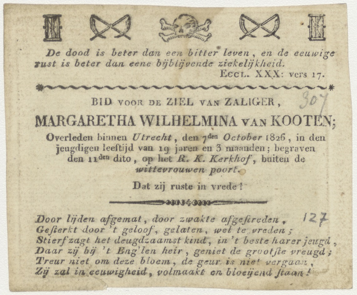 Visitatie, Maria begroet Elisabeth, kz. Bid voor ziel Margaretha Wilhelmina van Kooten (+1826) Utrecht