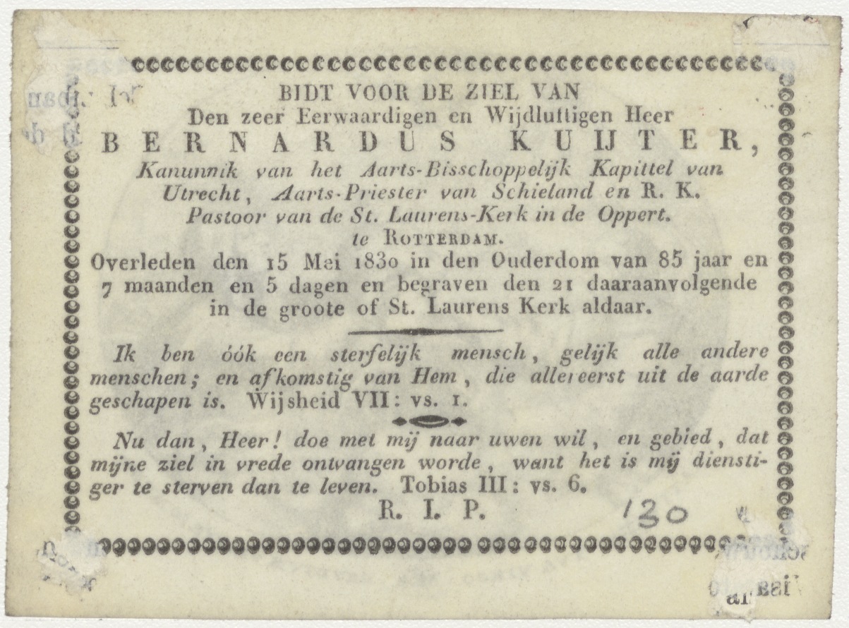 Geboorte van Christus met H. Geest, kz. Religieus; bid voor ziel Bernardus Kuijter (+1830) kanunnik Utrecht, pastoor St. Laurens Rotterdam