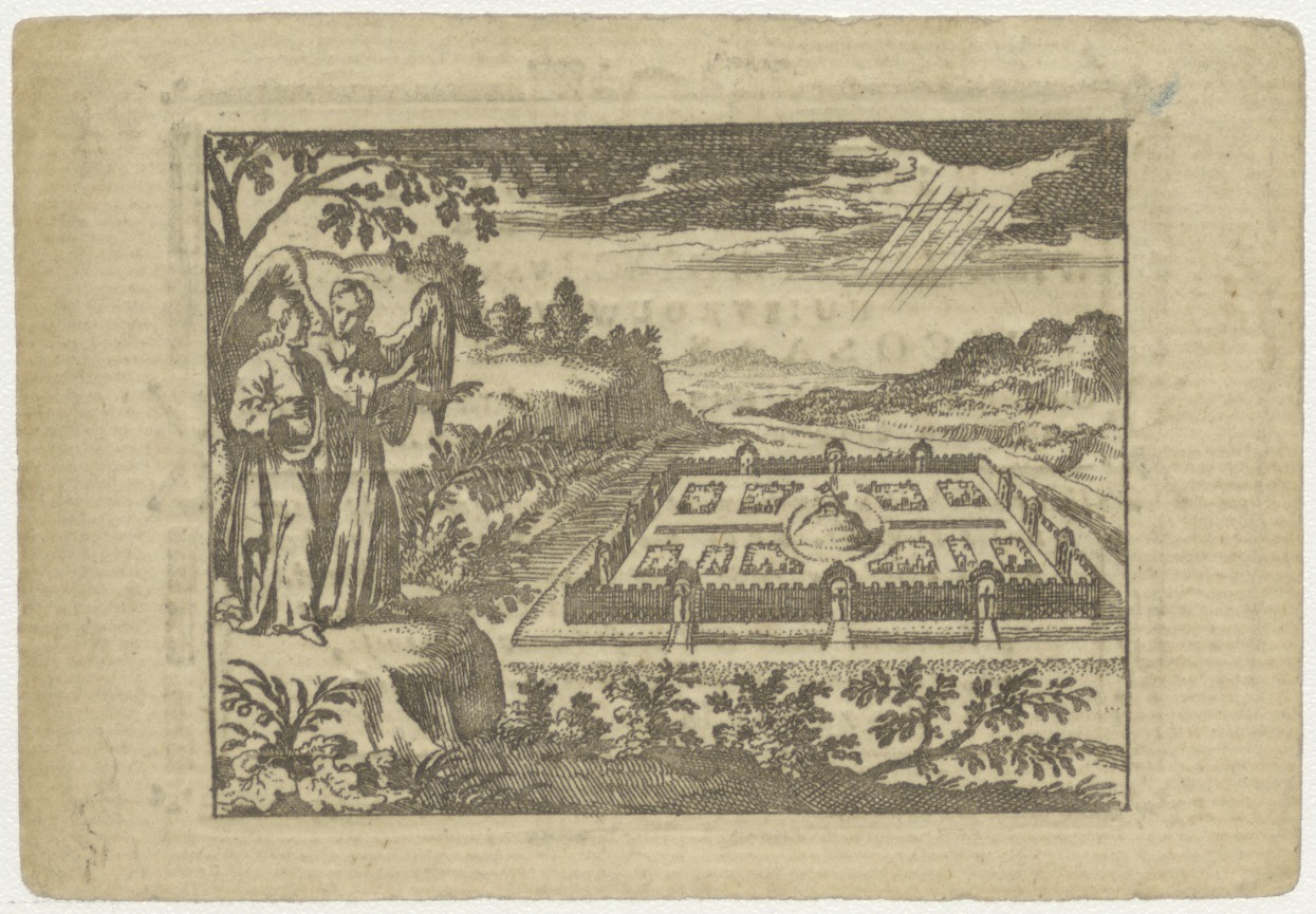 Engel toont aan Joannes op het eiland Patmos het nieuwe Jerusalem, kz. Bid voor ziel Wilhelmina Sydrach van der Schop (+1810) Amsterdam, huisvrouw van Nicolaas Veerman