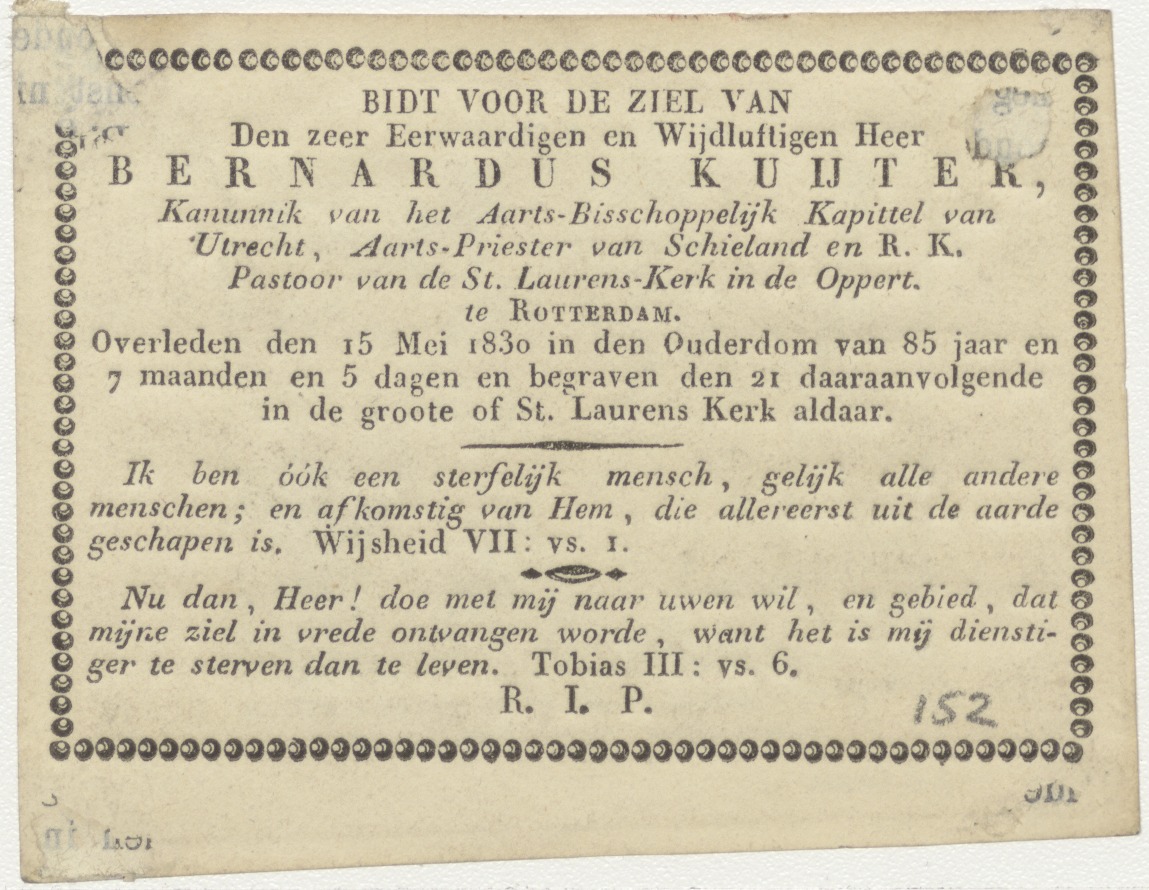 Christus als Goede Herder, kz. Religieus;bid voor ziel Bernardus Kuijter (+1830) pastoor St. Laurens de Oppert, Rotterdam