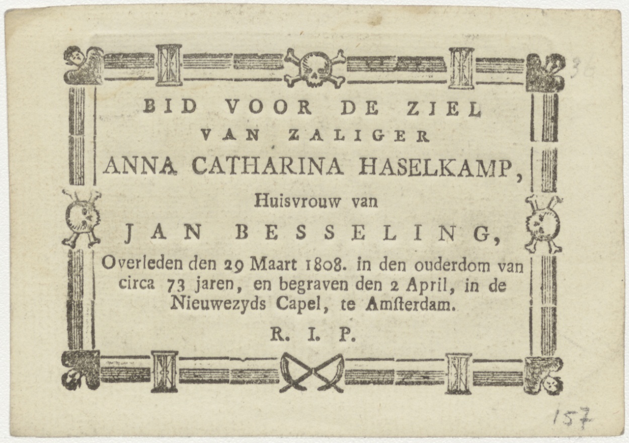 Besnijdenis van Christus, kz. bid voor ziel Anna Catharina Haselkamp (+1808) Amsterdam, huisvrouw van Jan Besseling