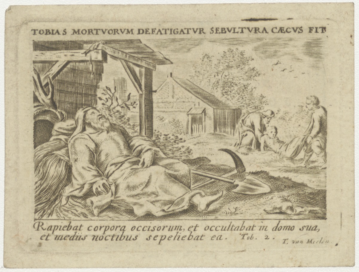 Tobias en Tobit begraven de dode, kz. Religieus; bid voor ziel Johannes Mulder (+1822) Haarlem, priester, kapellaan te Amsterdam