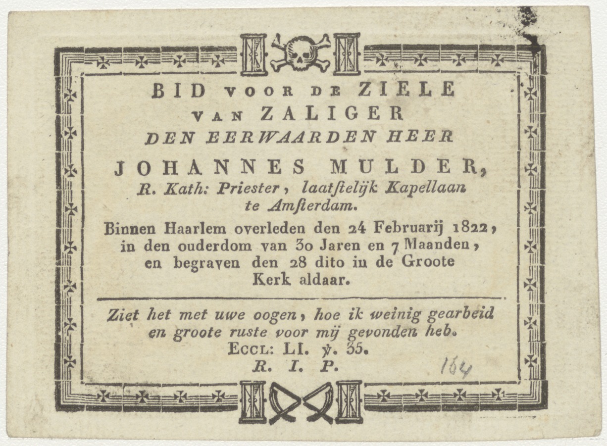 Maria met kind en Johannes de Doper in landschap, kz. Religieus; bid voor ziel Johannes Mulder (+1822) Haarlem, priester, kapellaan te Amsterdam