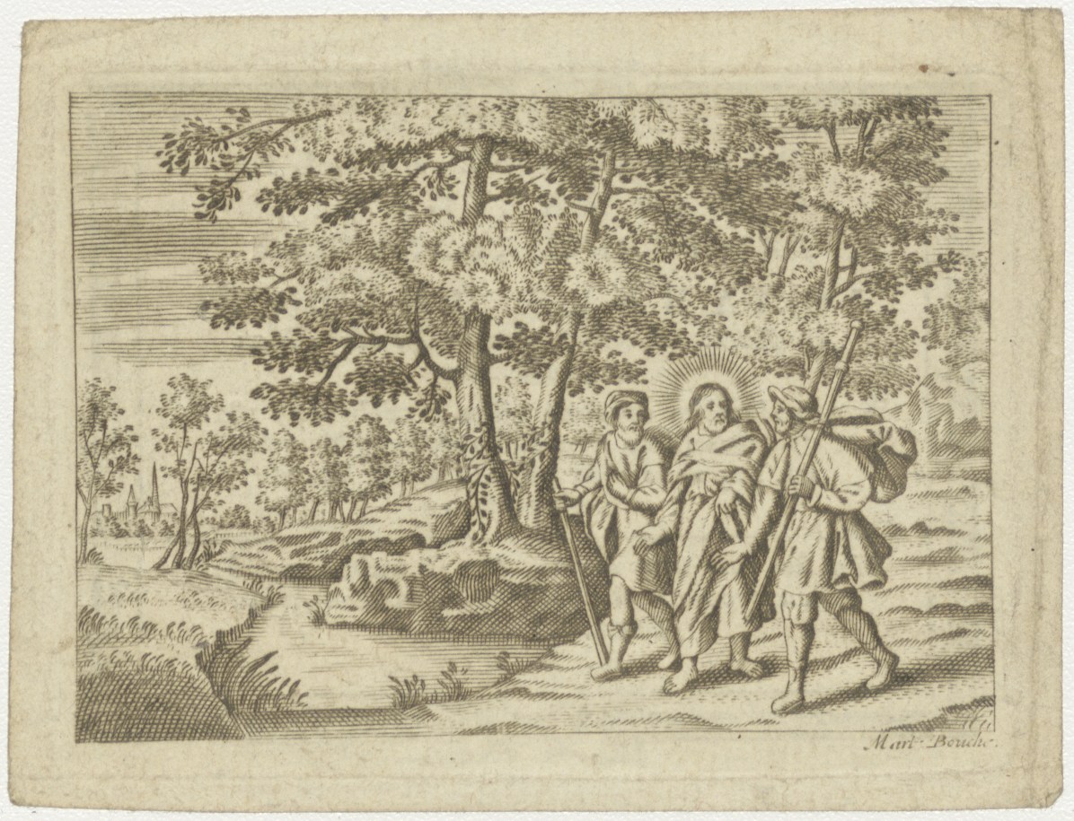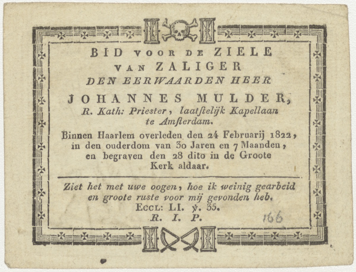 Christus en de Emmausgangers, kz. Religieus; bid voor ziel Johannes Mulder (+1822) Haarlem, priester, kapellaan te Amsterdam