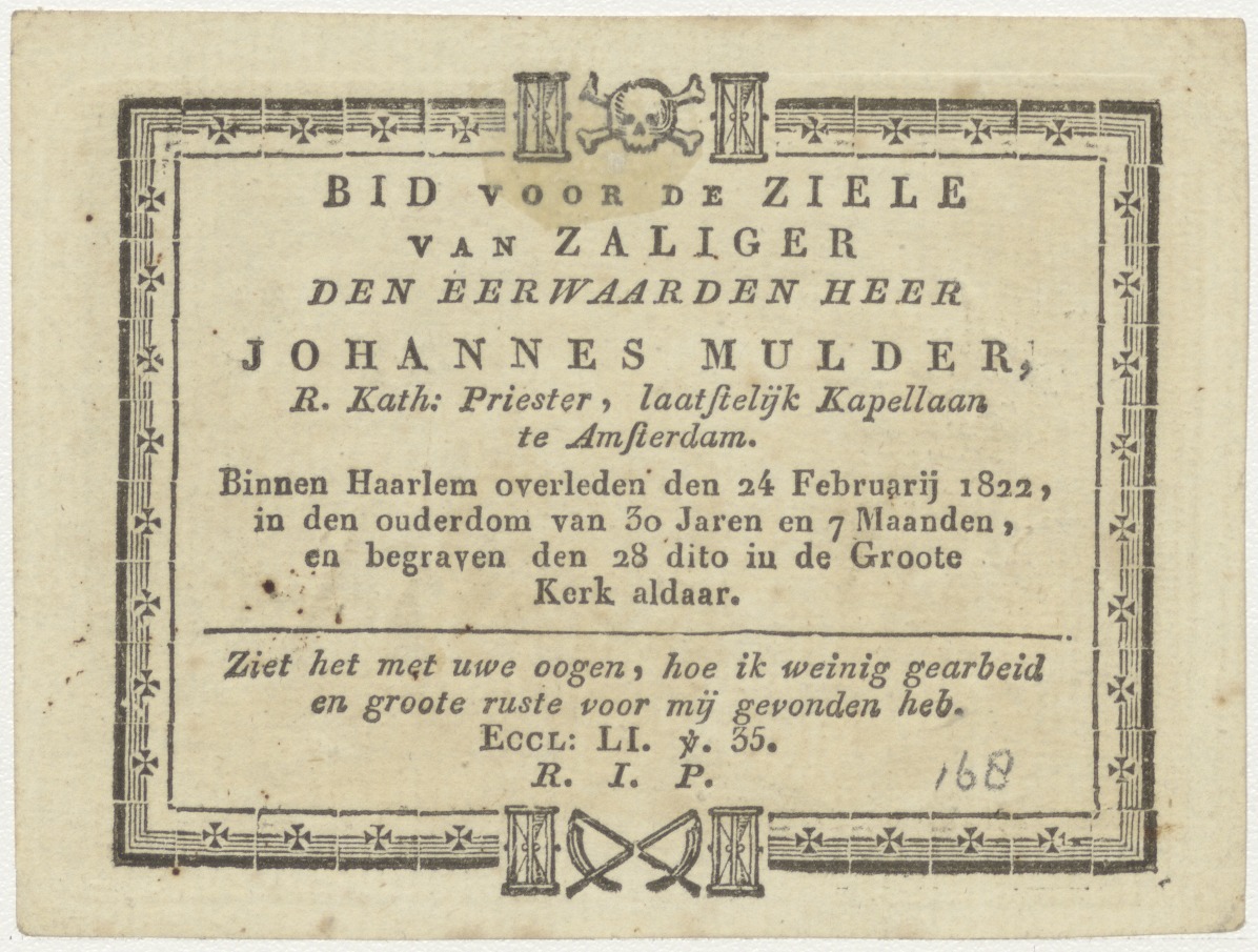 Geboorte van Christus, H. Familie, kz. Religieus; bid voor ziel Johannes Mulder (+1822) Haarlem, priester, kapellaan te Amsterdam