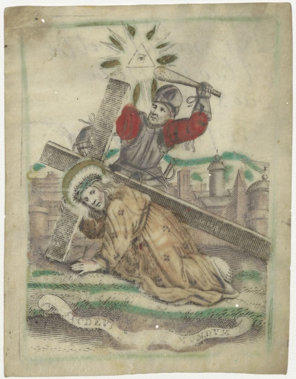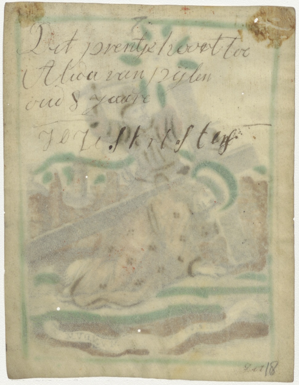 Christus valt onder het kruis, ingekleurd, kz. bezit van Van Pijlen