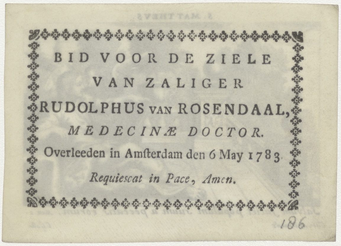 St. Mattheus evangelist, kz. Bid voor ziel Rudolphus van Rosendaal (+1783) Amsterdam