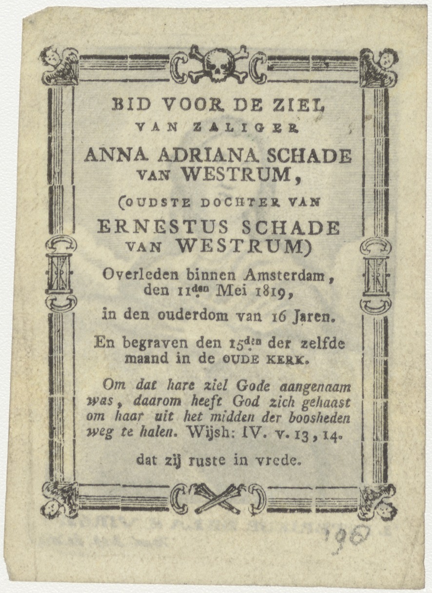 Maria H. Hart "L'interieur de la S. Virge", kz. bid voor ziel Anna Adriana Schade van Westrum (+1819) Amsterdam