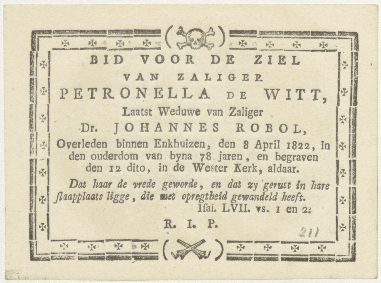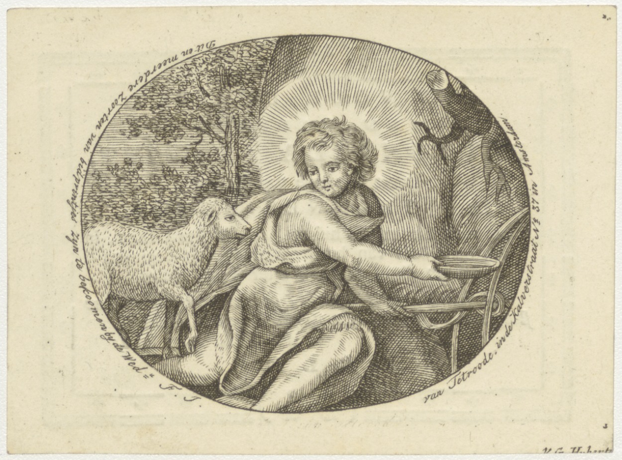 Johannes de Doper neemt water, met lam, kz. Bid voor ziel Petronella de Witt (+1822) Enkhuizen, weduwe van Johannes Robol