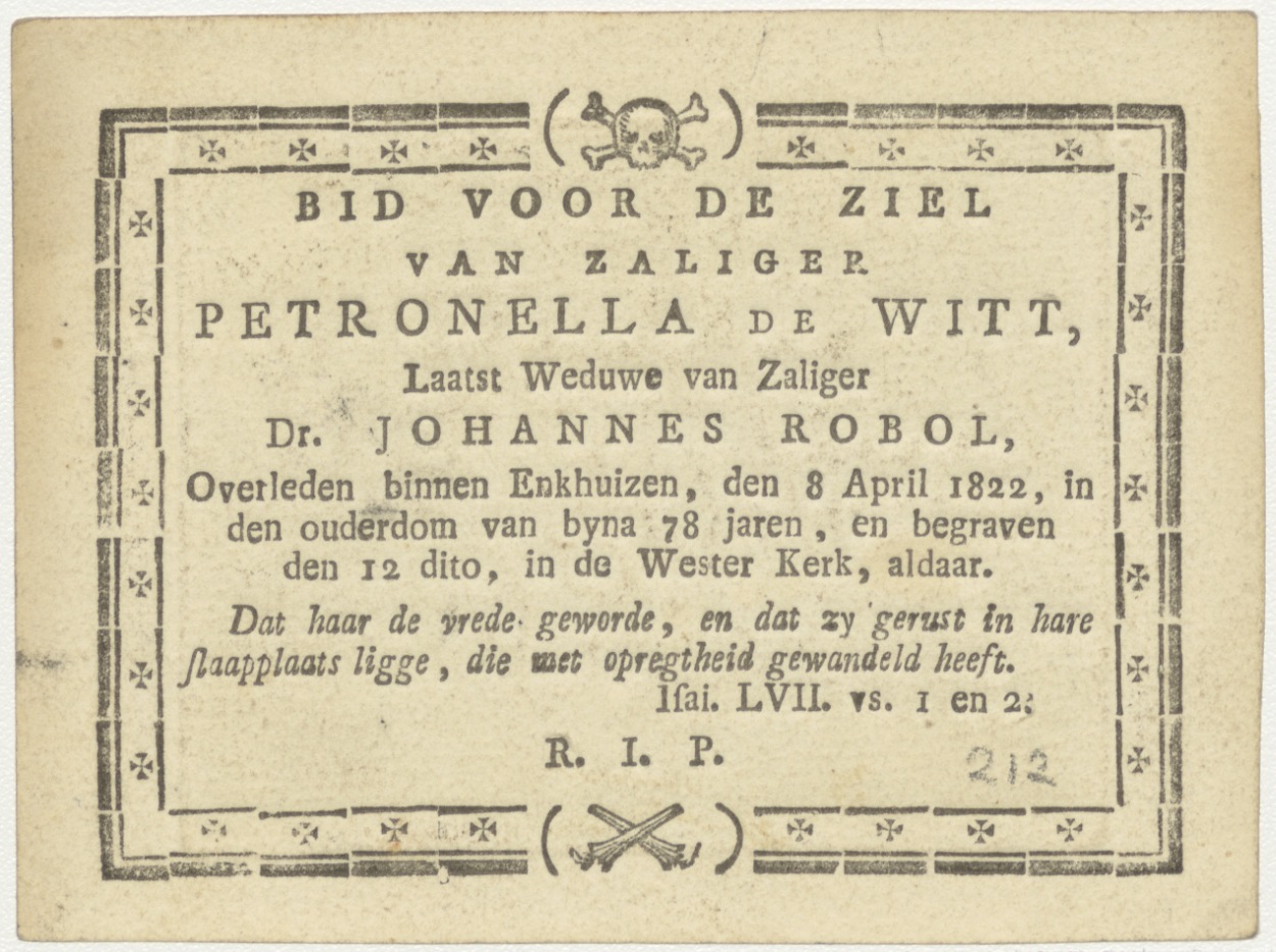 Besnijdenis van Christus, kz. Bid voor ziel Petronella de Witt (+1822) Enkhuizen, weduwe van Johannes Robol