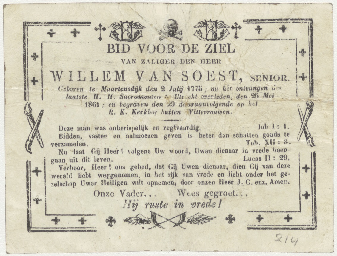 Verrijzenis des Heeren, kz. Bid voor ziel Willem van Soest (+1861) Utrecht