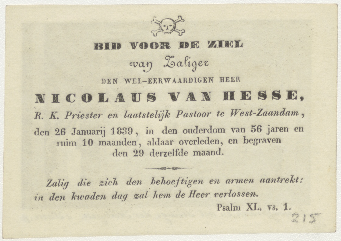 Godspraak in het Heilige der Heiligen (1 Sam.3), kz. Religieus; bid voor ziel Nicolaus van Hesse (+1839) pastoor te West=Zaan