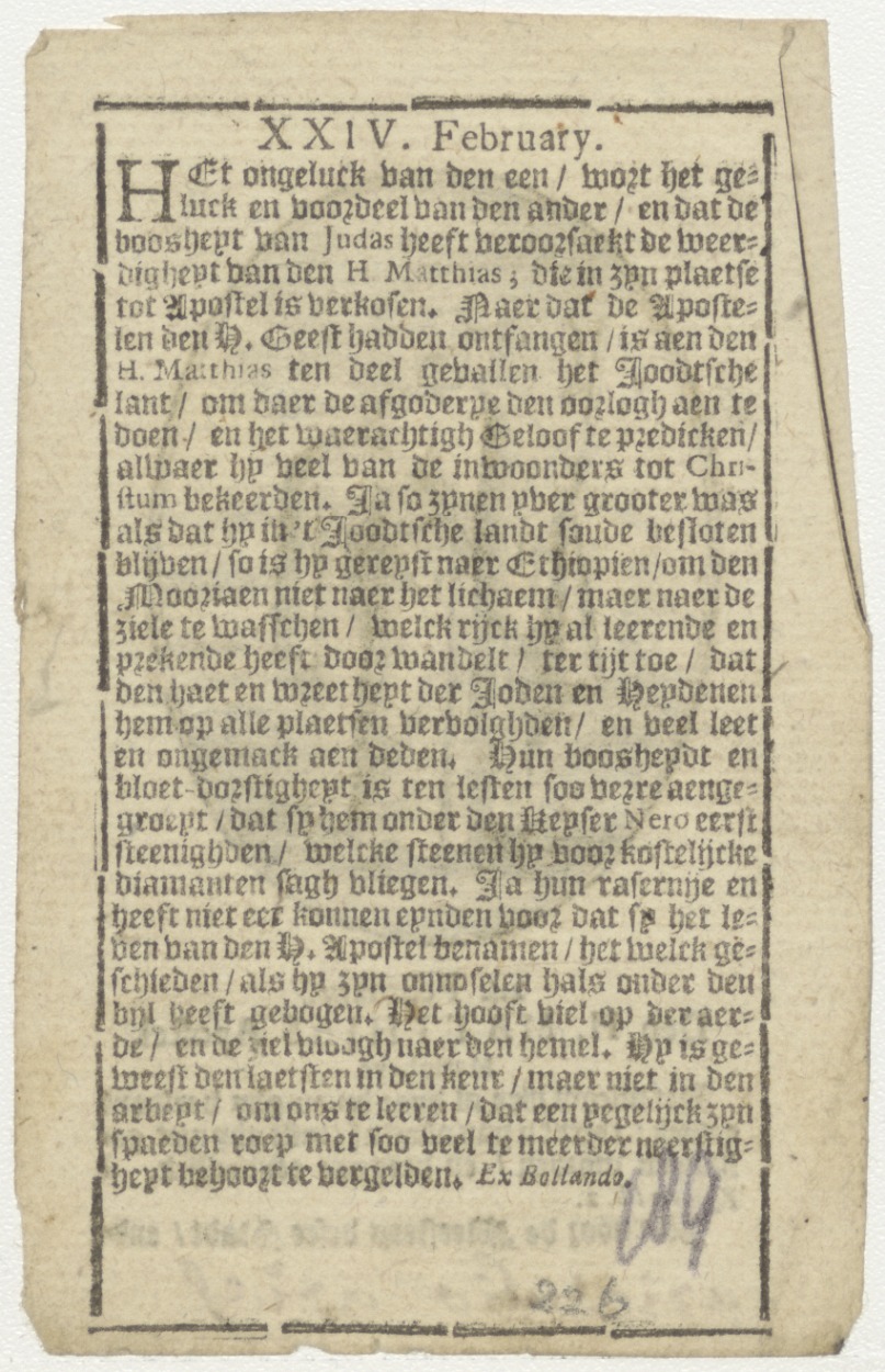 H. Matthias, apostel, kz. levensbeschrijving