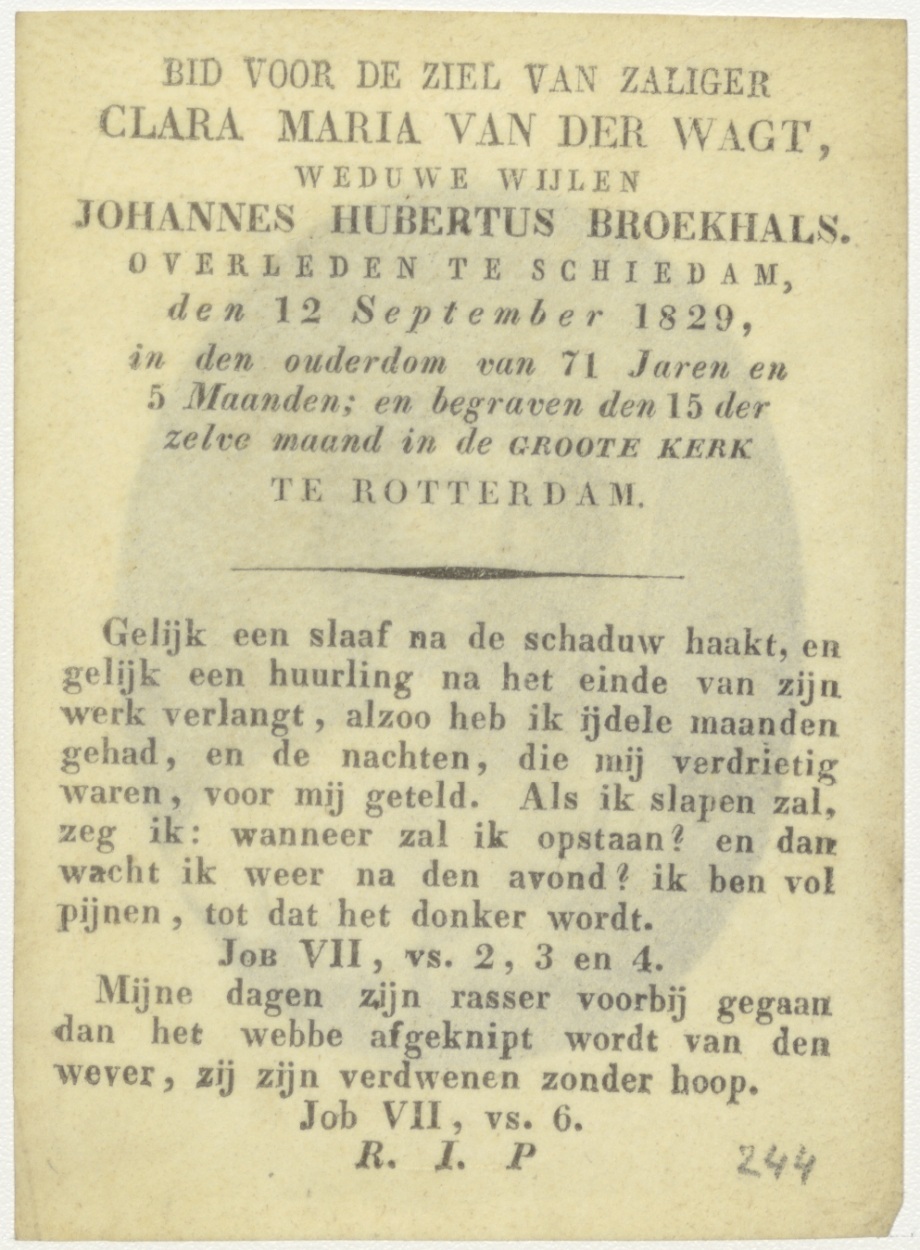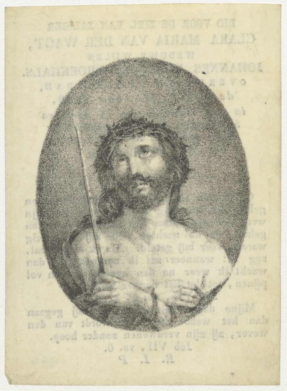 Christus met doornenkroon, kz. bid voor ziel Clara Maria van der Wagt (+1829) Rotterdam, weduwe van Johannes Hubertus Broekhals
