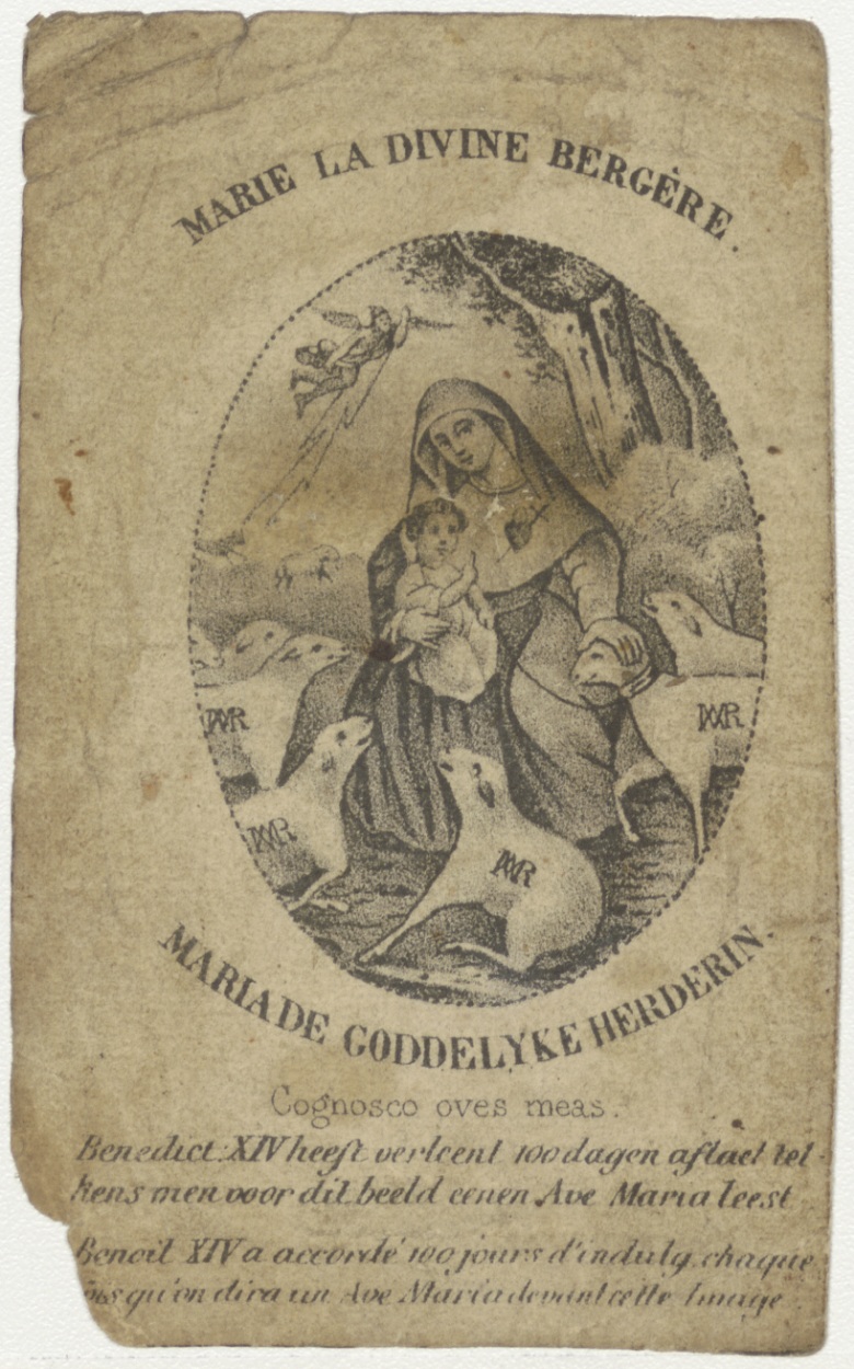 Maria de Goddelijke Herderin, met "Benedict XIV ... 100 dagen aflaet ..."