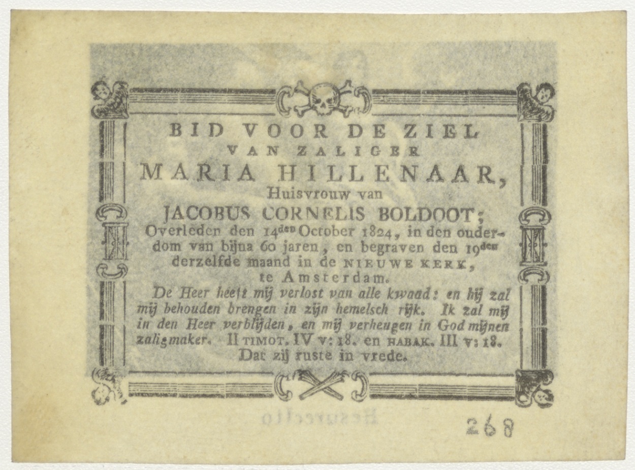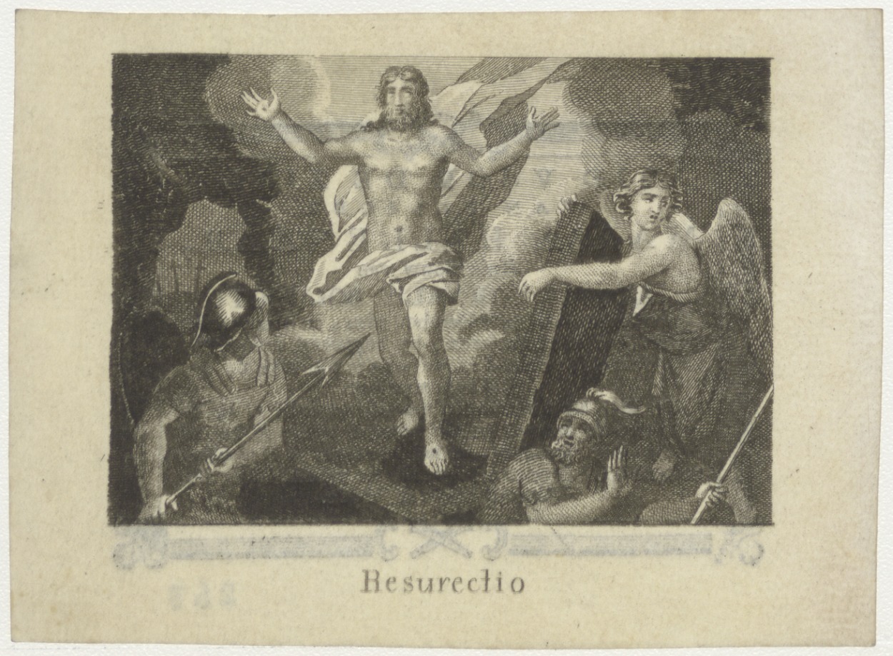 Verrijzenis van Christus, kz. Bid voor ziel Maria Hillenaar (+1824) Amsterdam, huisvrouw van Jacobus Cornelis Boldoot
