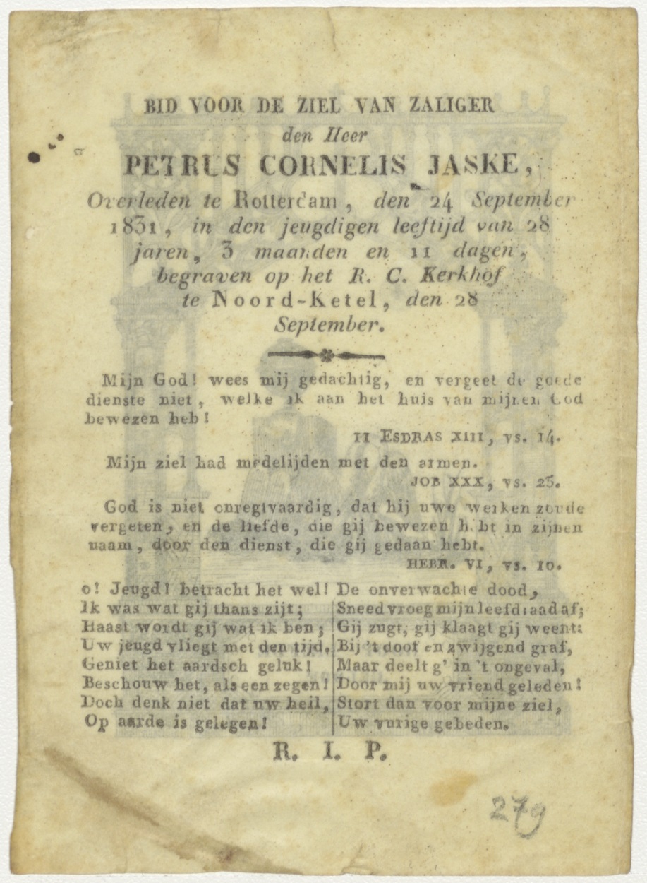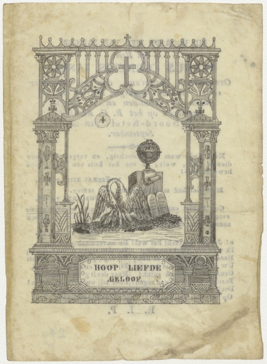 Hoop, liefde, wetenschappen, met pelikaan jongen voedend, wereldbol op sokkel, kz. Bid voor ziel Petrus Cornelis Jaske (+1831) Rotterdam