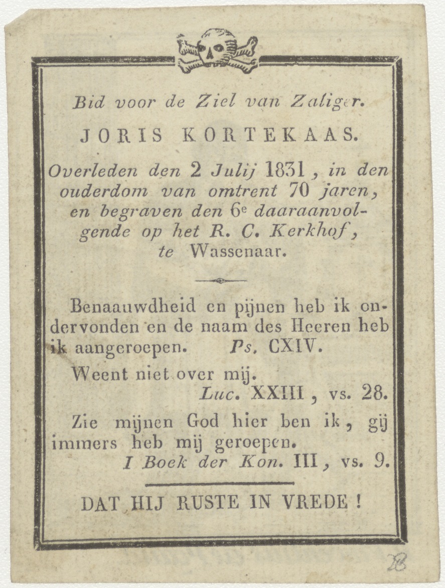 H. Vincentius van Padua, kz. Bid voor ziel Kortekaas (+1831) Wassenaar