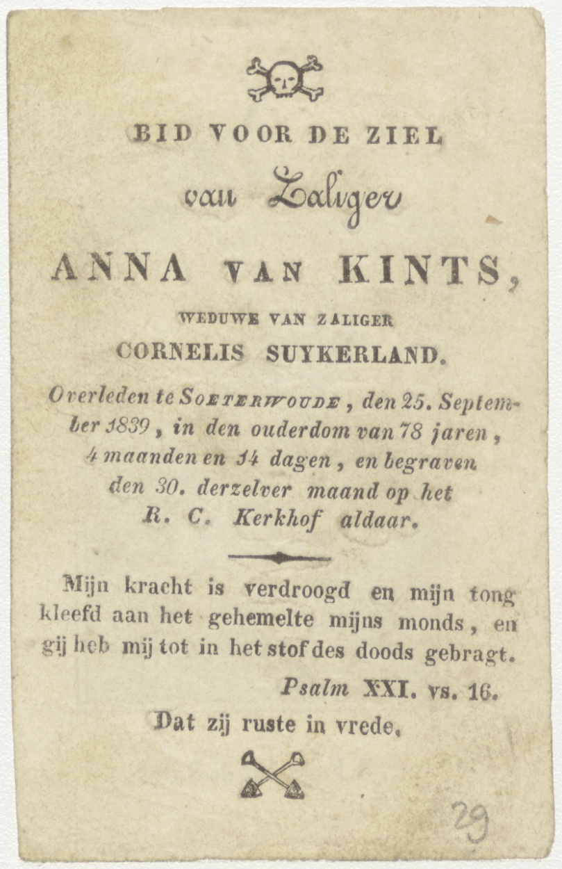 H. Francois de Sales, kz. Bid voor ziel van Kints-Suykerland (+1839) Zoeterwoude