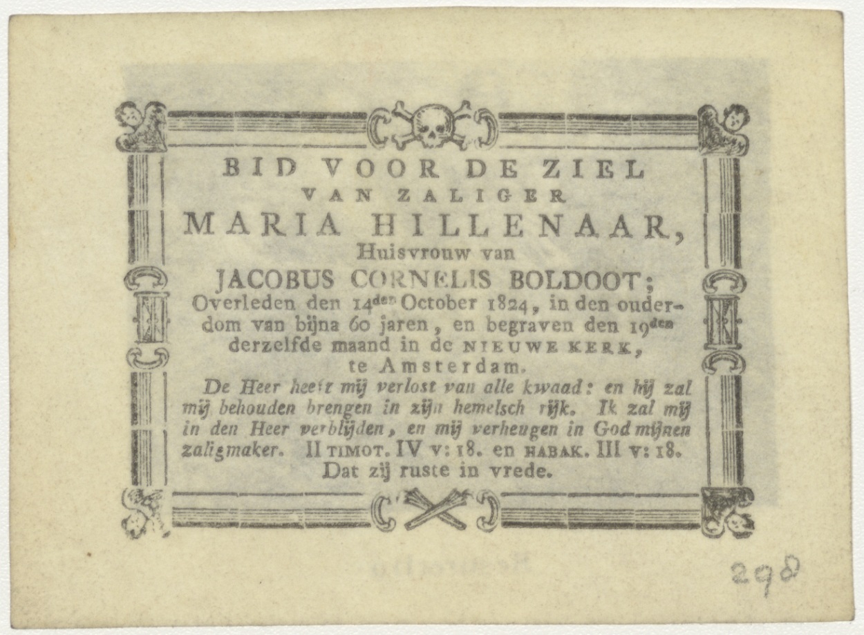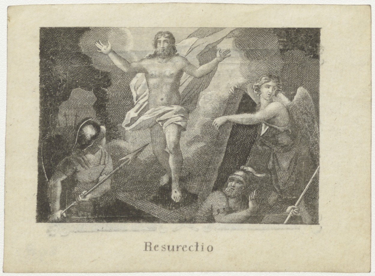 Verrijzenis van Christus, kz. Bid voor ziel Maria Hillenaar (+1824) Amsterdam, huisvrouw van Jacobus Cornelis Boldoot