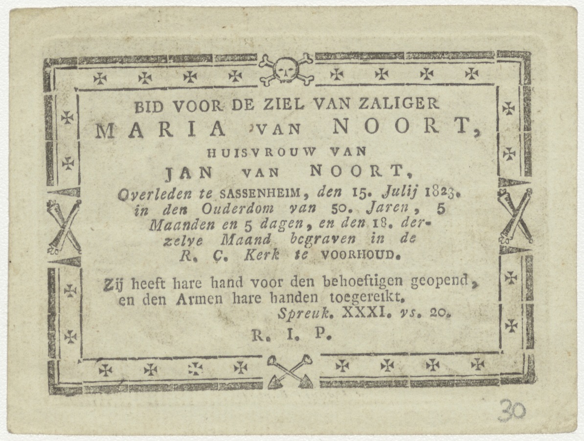 H. Joannes de Doper, kz. Bid voor ziel Van Noort (+1823) Sassenheim